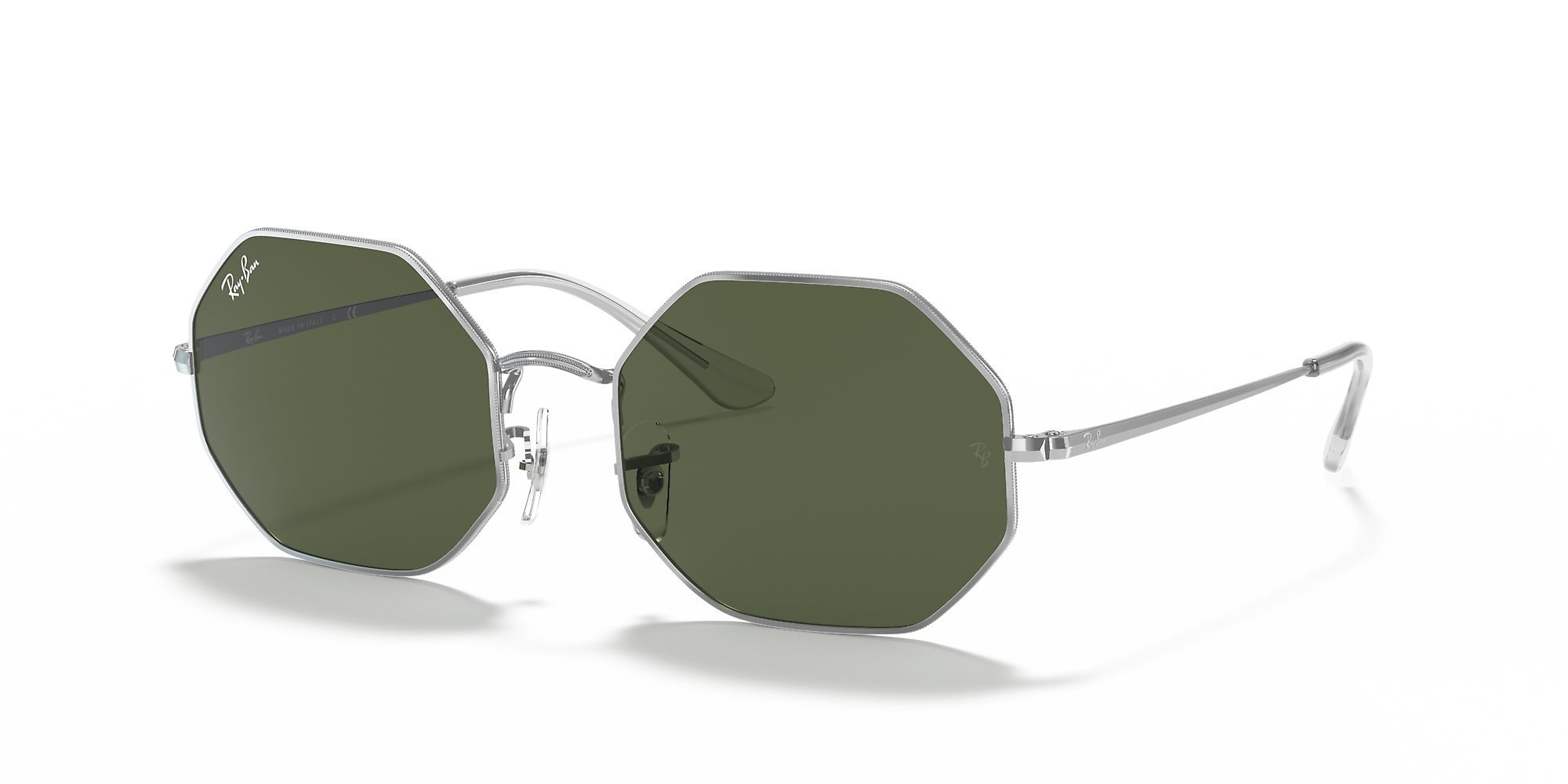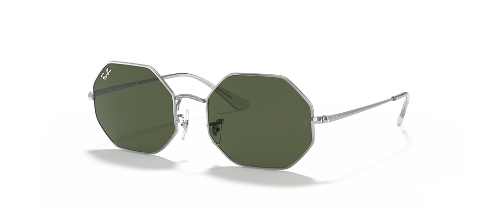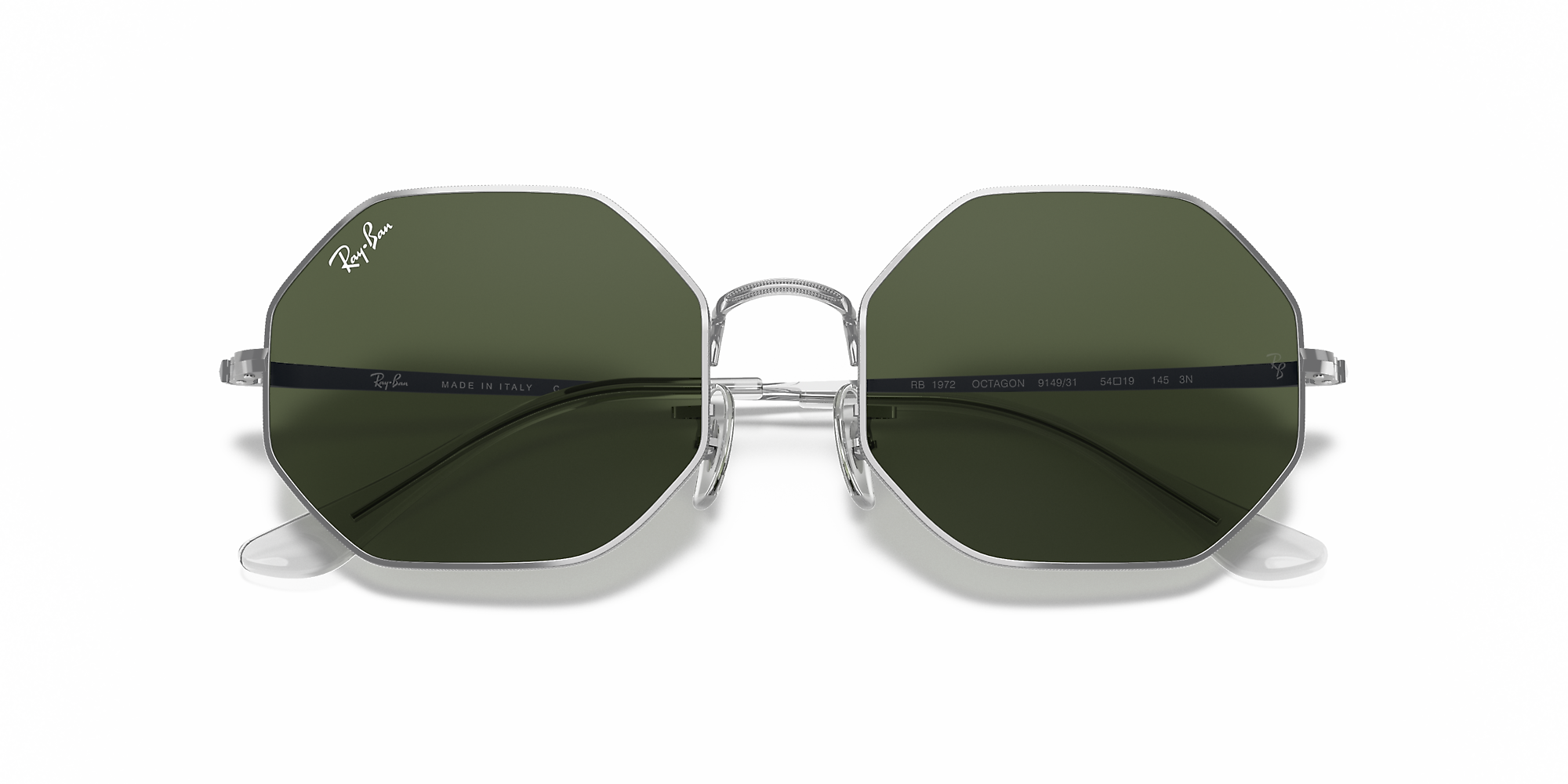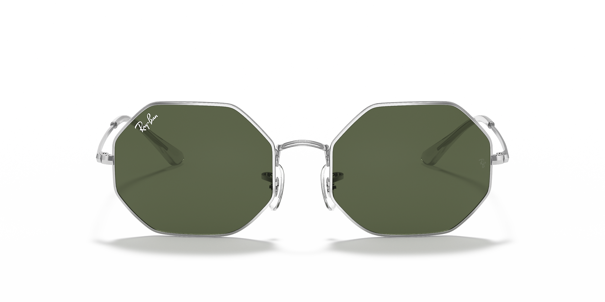 Experience the perfect blend of classic and contemporary style with Ray-Ban Octagon 1972 sunglasses. Crafted from durable metal, these irregular-shaped glasses feature a polished silver frame that adds a touch of sophistication to any look. The classic green lenses, treated with G-15 technology, provide superior clarity and color contrast for an enhanced visual experience. These shades are not only stylish but also practical. Embrace your individuality with these iconic Ray-Ban. Available with prescription lenses.