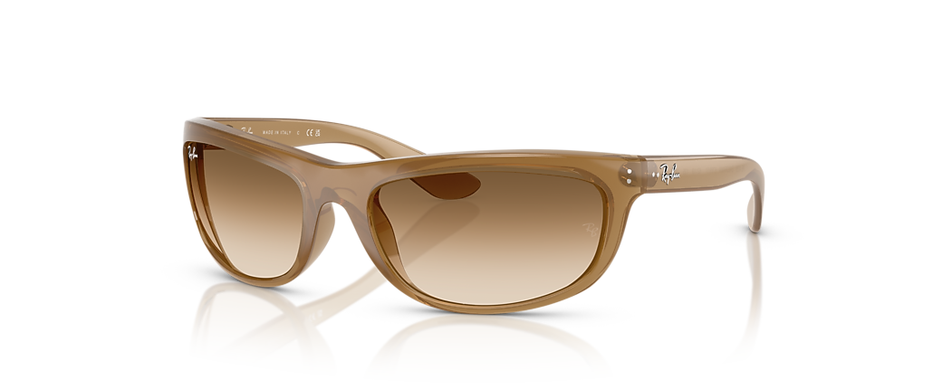 Ray-Ban Balorama shades are a unique blend of vintage style and modern technology. The matte opal light brown frame, combined with a rectangle shape, gives these glasses a retro-chic appeal. The gradient brown lenses add a touch of sophistication to the overall design, making these shades perfect for both casual and formal wear. Available with prescription lenses.