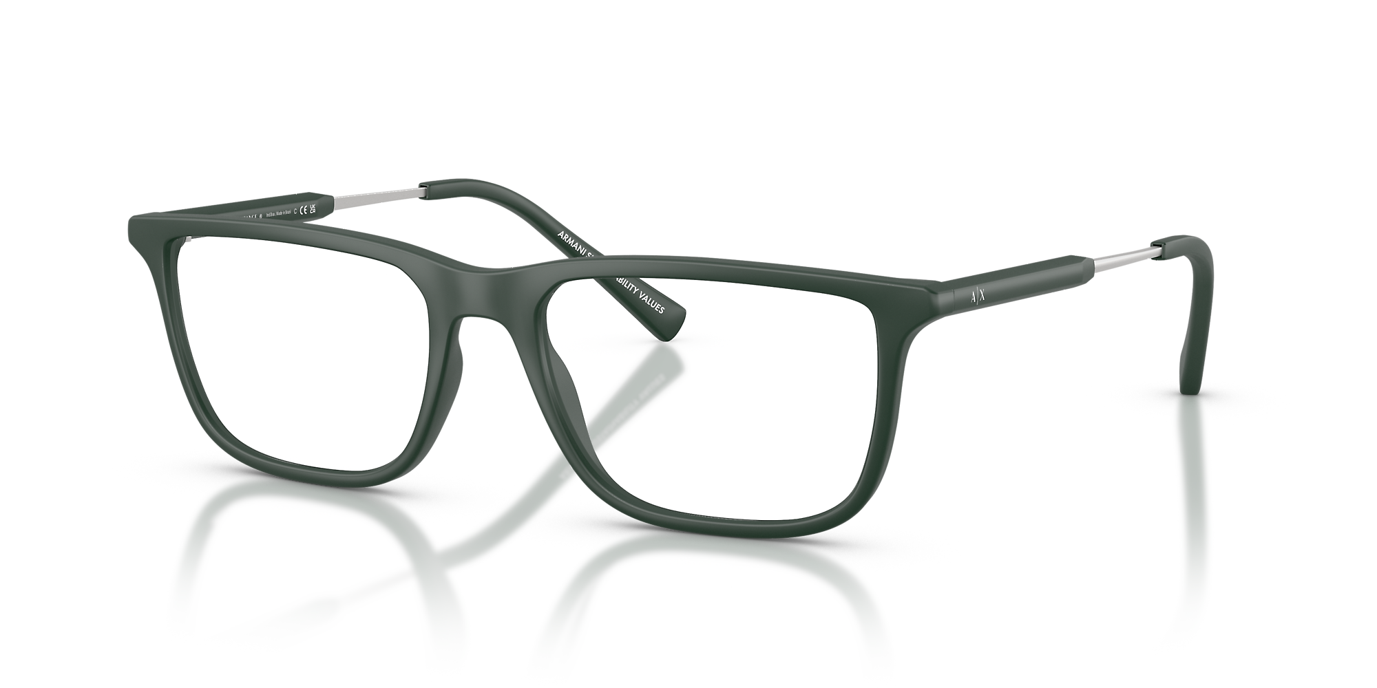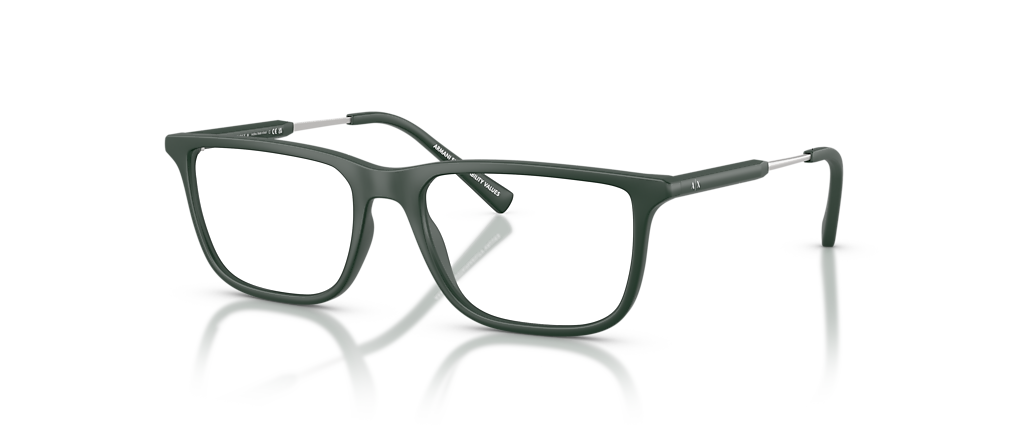 Elevate your fashion with Armani Exchange AX3126 eyeglasses. The pillow shape, combined with a matte dark green frame color, creates a unique and stylish look. The frame is also designed to be lightweight and comfortable to wear for extended periods of time. These glasses are a versatile choice for those seeking both fashion and functionality. Available with prescription lenses.