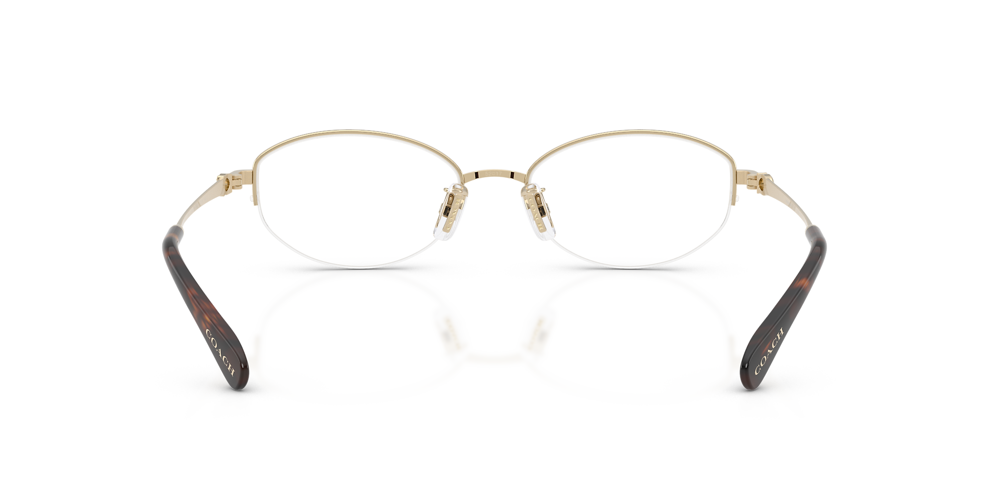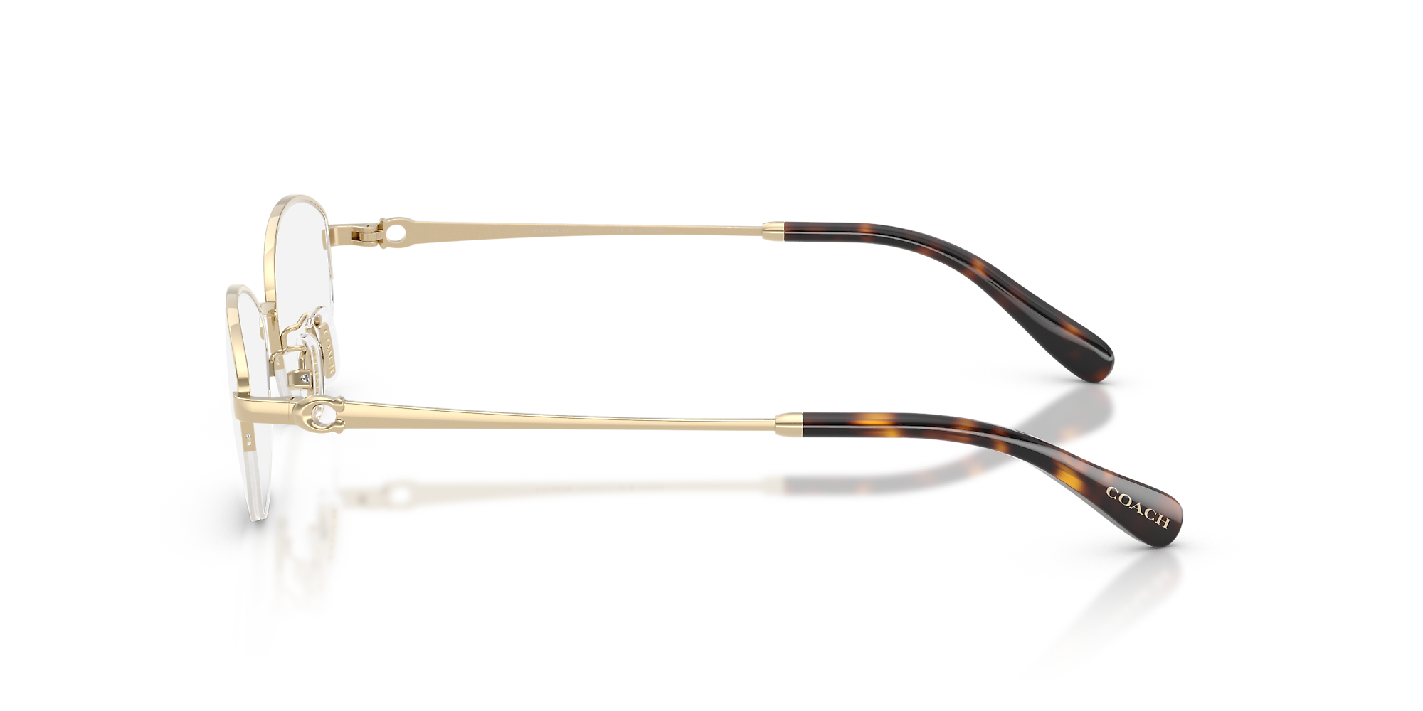 Elevate your optical style with the Coach HC5207TD semi-rimless frames. Crafted from premium materials with a sleek titanium temple, these gold-toned round frames offer a timeless aesthetic with lightweight durability. The saddle bridge and goose neck nose pads, combined with low bridge fit frames inspired by Asian design, provide exceptional comfort. Finished with a sculpted C logo for a refined heritage detail.