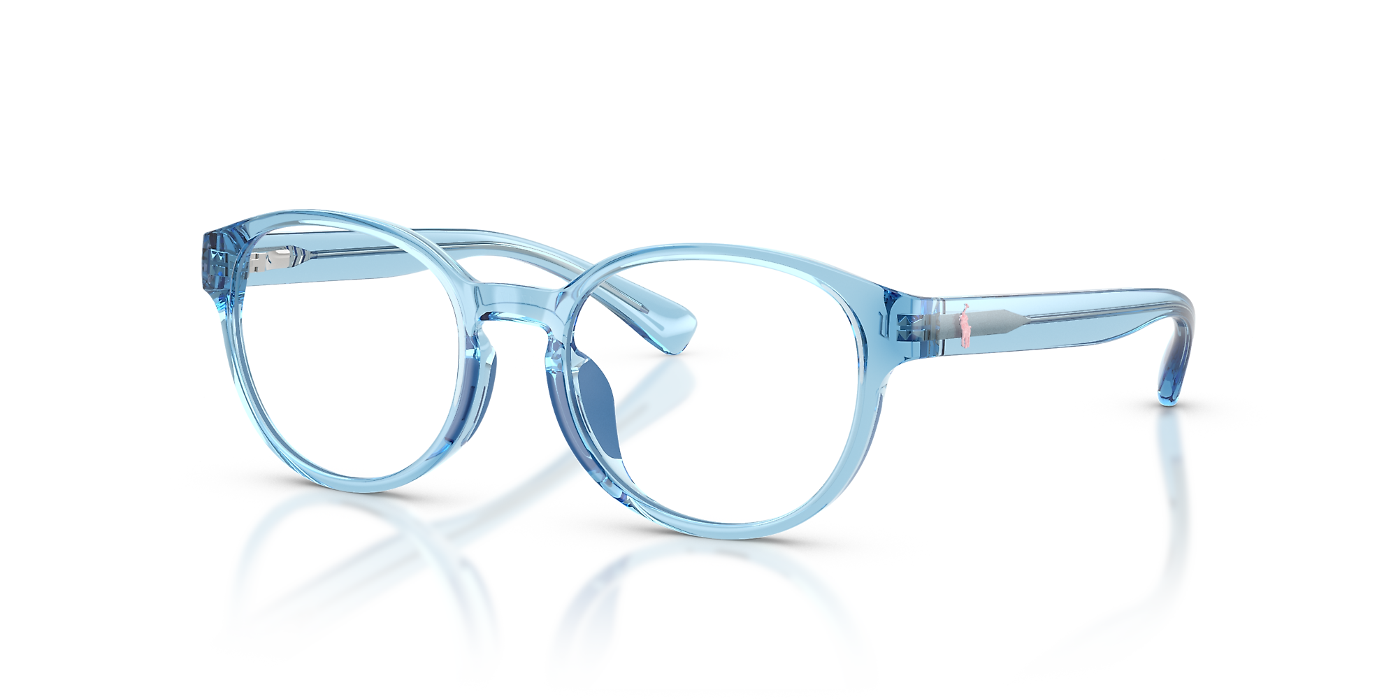 Elevate your fashion while optimizing performance with Polo Ralph Lauren PP8550U. The polished, shiny transparent blue frame, paired with phantos shape, offers a modern and sophisticated look. The keyhole bridge adds a touch of uniqueness to the overall style. These glasses are not only stylish but also versatile. Embrace the effortless elegance of Polo Ralph Lauren in these optical frames. Available with prescription lenses.