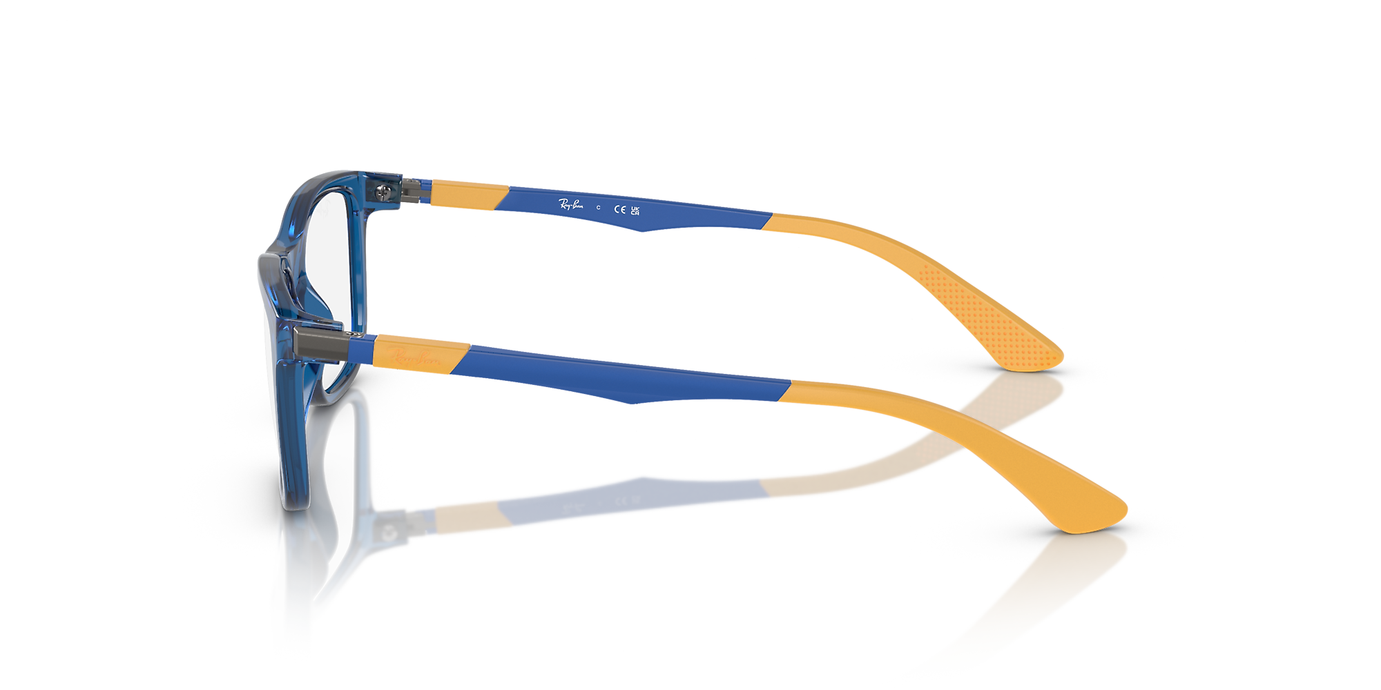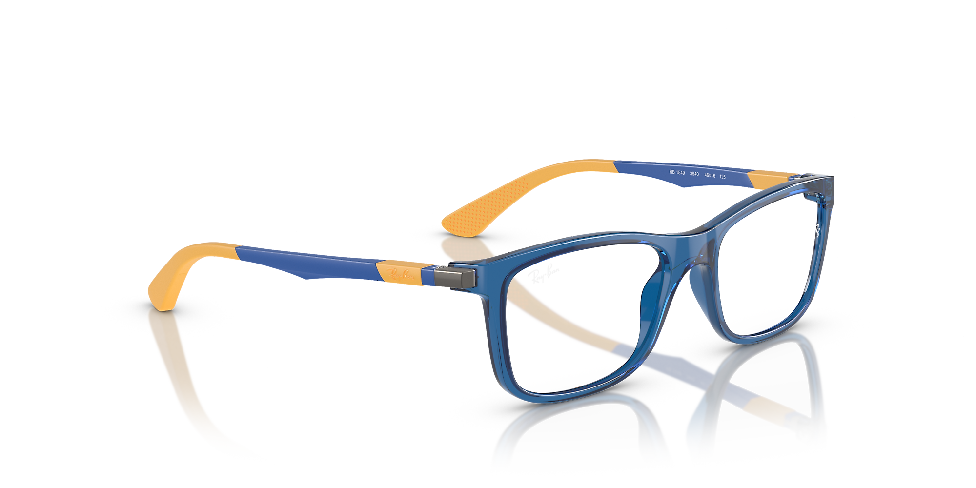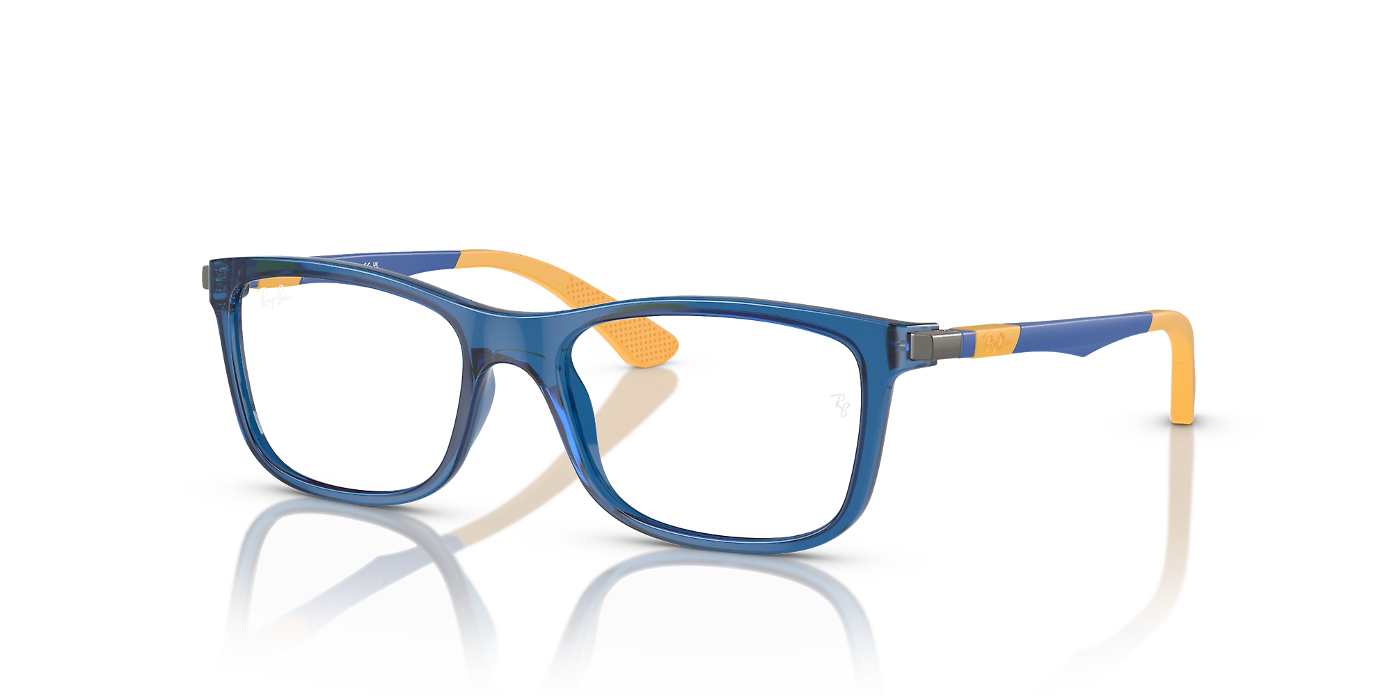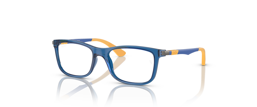 Give young visionaries timeless style with the RB1549 Optics Kids. These full-rim square frames combine a bold acetate front in vibrant blue with sleek metal temples for a fresh, structured look. Designed for comfort and durability, rubber details on the temples ensure a perfect fit. Clear lenses complete this modern Ray-Ban eyeglasses design, bringing iconic edge to everyday moments.