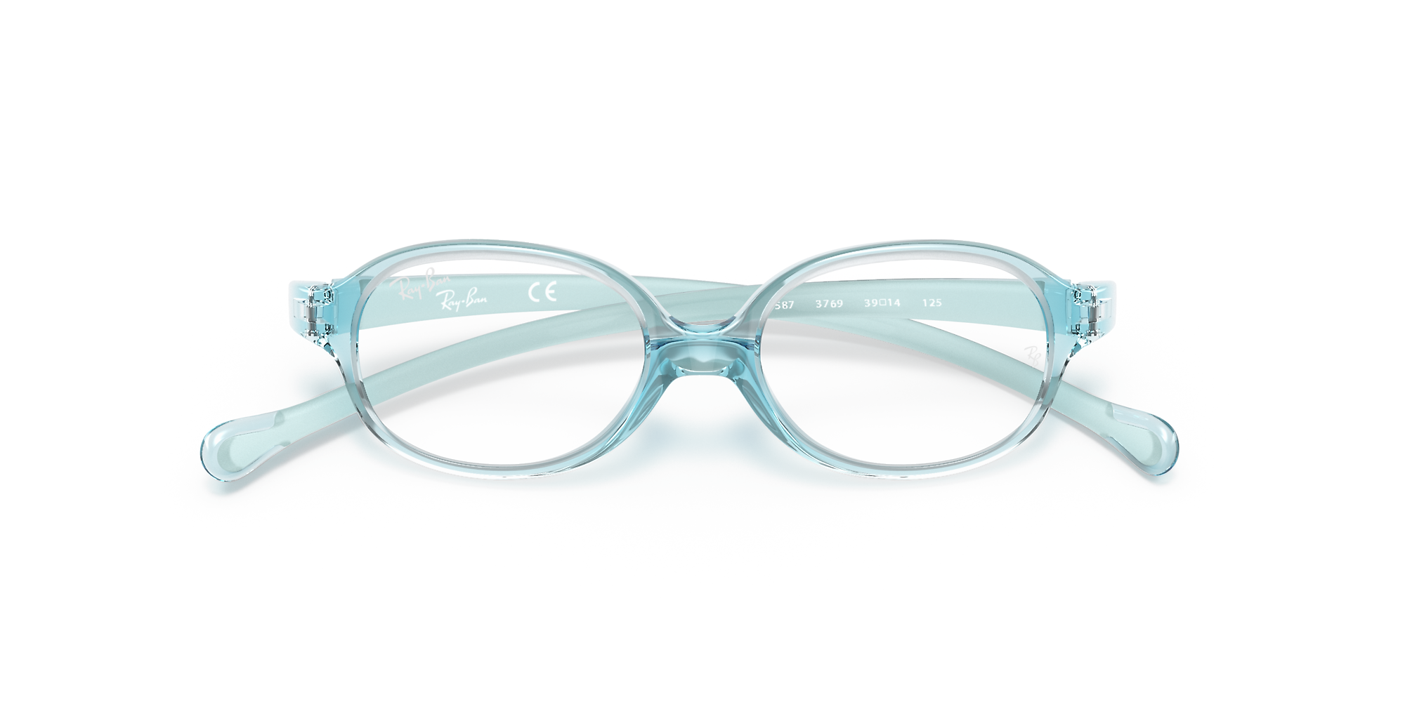 Discover the perfect blend of style and comfort with Ray-Ban RB1587 Optics Kids. The oval shape and polished frame, in a transparent light blue color, add a touch of sophistication to any outfit. The durable acetate material provides a comfortable fit for children's faces. The saddle bridge ensures a secure fit, while the frame design prevents them from sliding down. These eyeglasses are as practical as they are stylish. Available with prescription lenses.