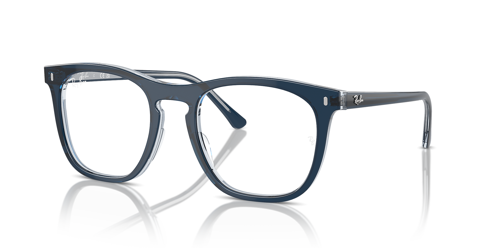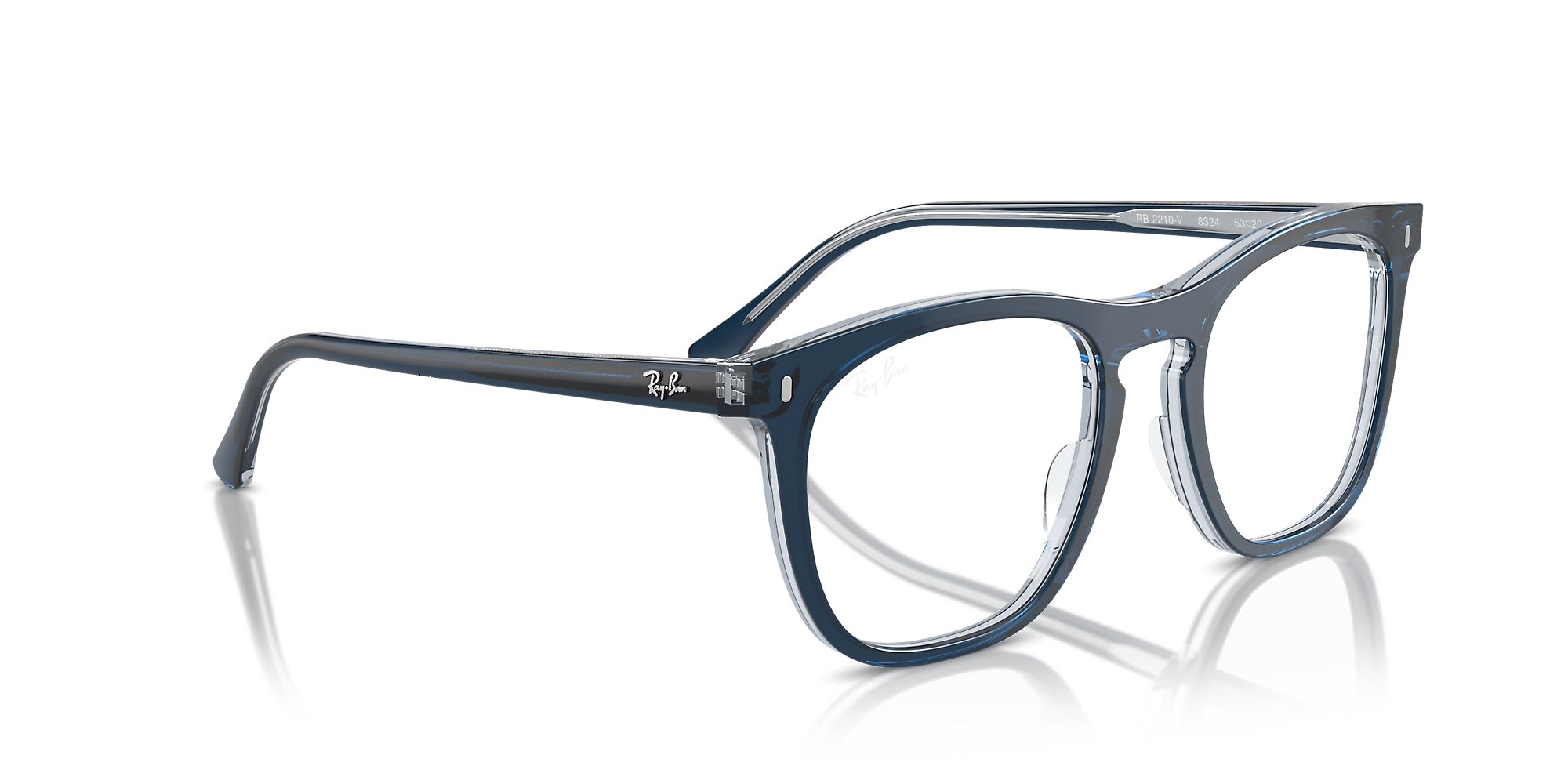 Elevate your style quotient with Ray-Ban RB2210V Optics. The square shape and polished finish of the blue on transparent blue frame add a touch of sophistication to your look. Crafted from acetate, these glasses are not only stylish but also durable. The frame design features a key bridge that provides a comfortable fit for those who wear reading glasses. Available with prescription lenses.