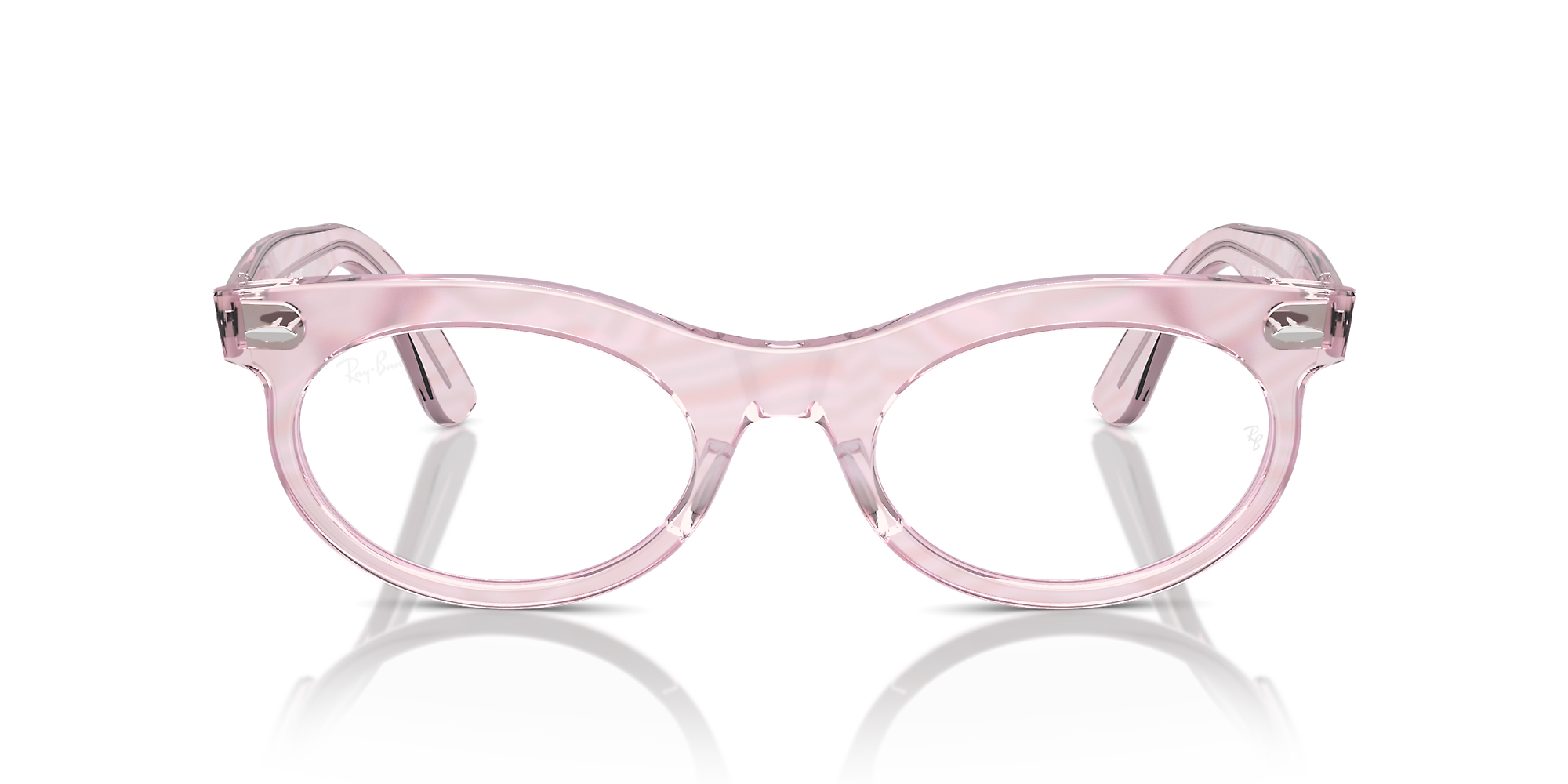 Introducing Ray-Ban Wayfarer Oval Optics Change, a pair of eyeglasses that seamlessly merge style and practicality. The oval shape of the frame brings a contemporary touch to the classic Wayfarer design, and the polished photo waves purple finish gives these glasses a lively appearance. These frames come with transparent lenses for a smooth transition into clear vision. Available with prescription lenses.