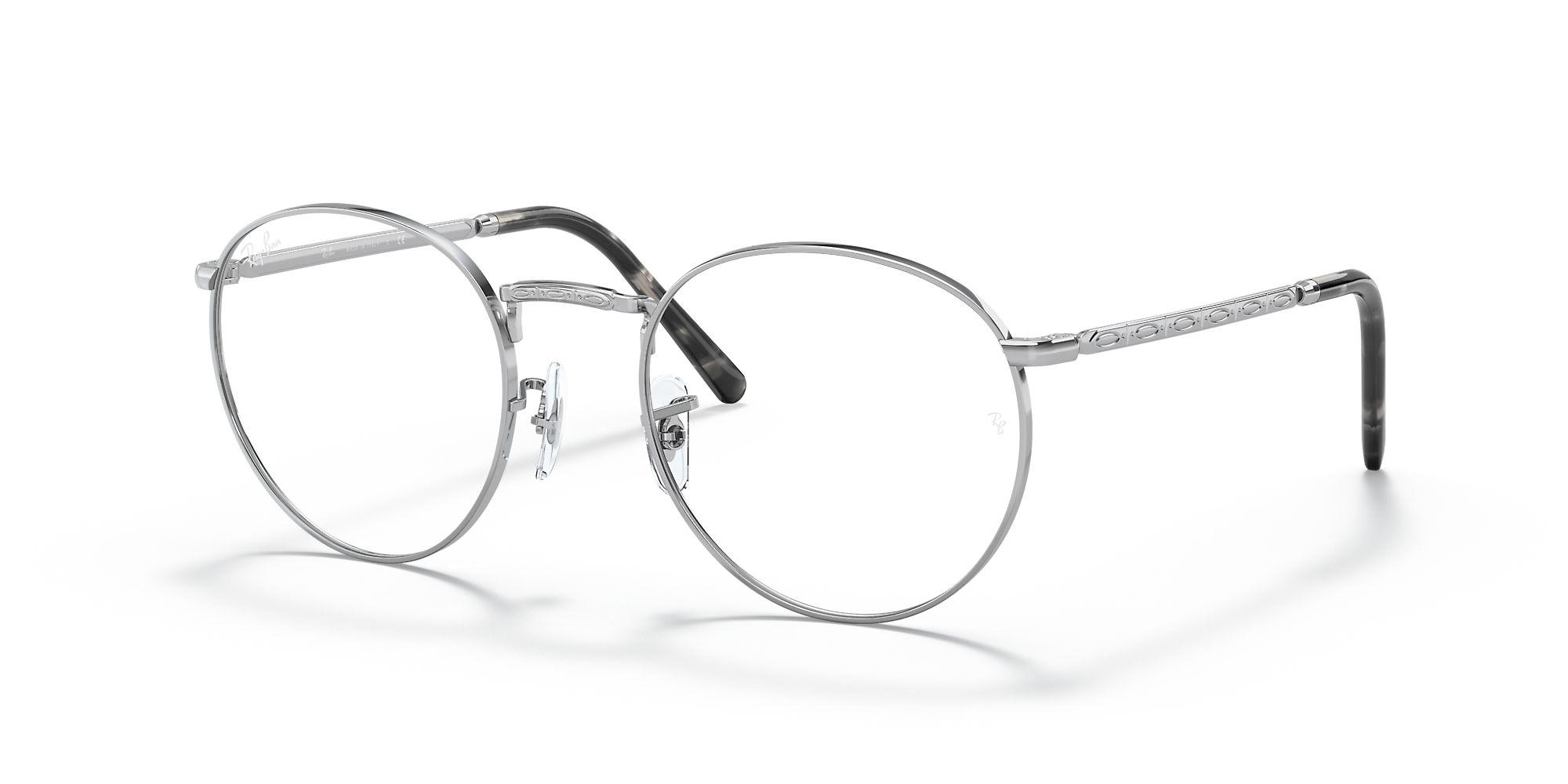 Ray-Ban New Round Optics reimagines the iconic round shape in a modern, polished design. The phantos shape and metal frame material create a lightweight yet durable pair of glasses. The silver polished frame color finish adds a touch of sophistication to any look. These frames are versatile enough to be worn as everyday glasses or for more specialized purposes. Available with prescription lenses.