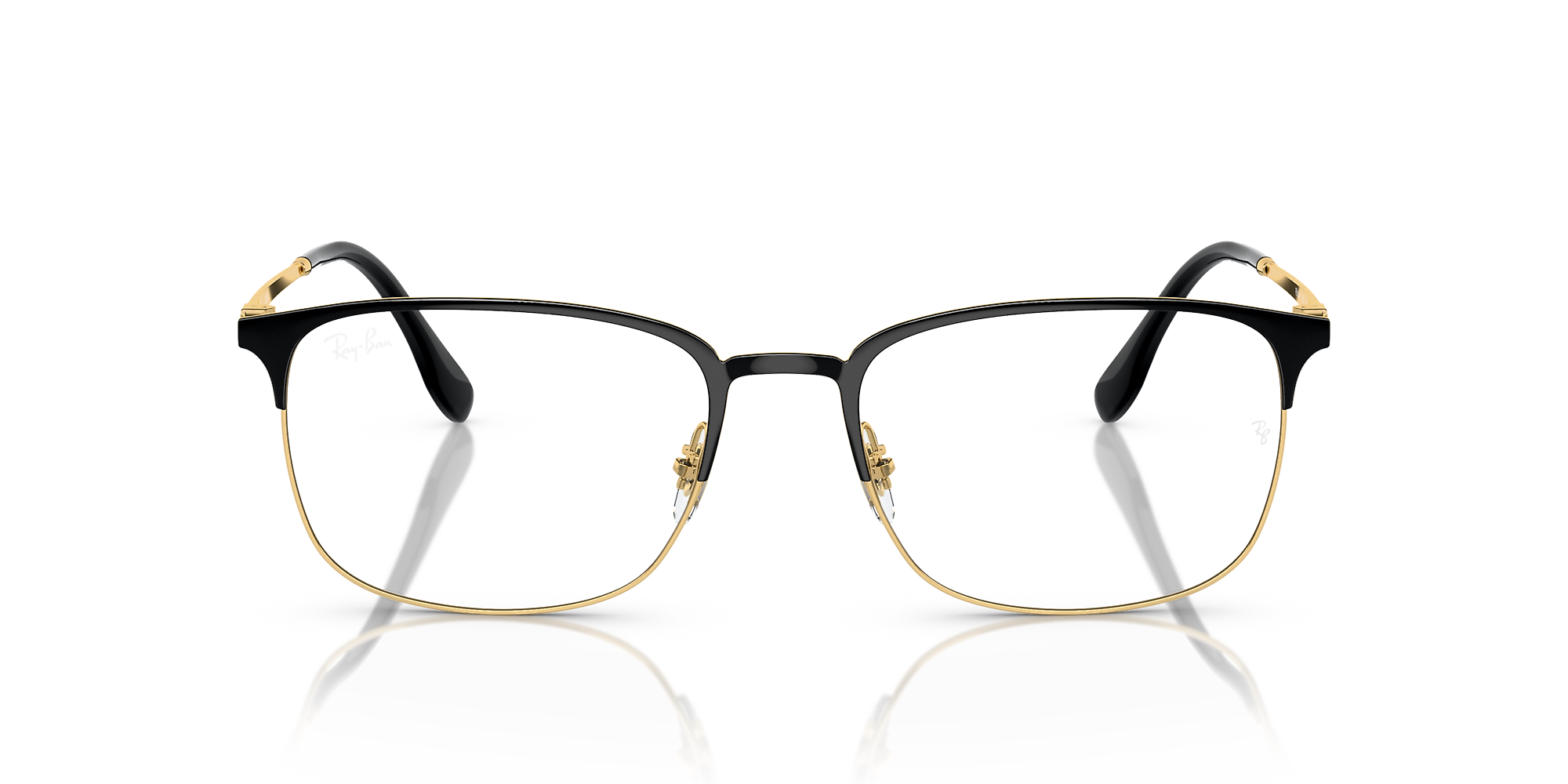 Enhance your style and visual experience with Ray-Ban RB6494 Optics. Showcasing a polished black on gold metal frame in a distinctive pillow shape, these glasses are crafted to make an impact. These frames combine fashion and practicality, making them a perfect option for daily use. Available with prescription lenses.