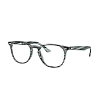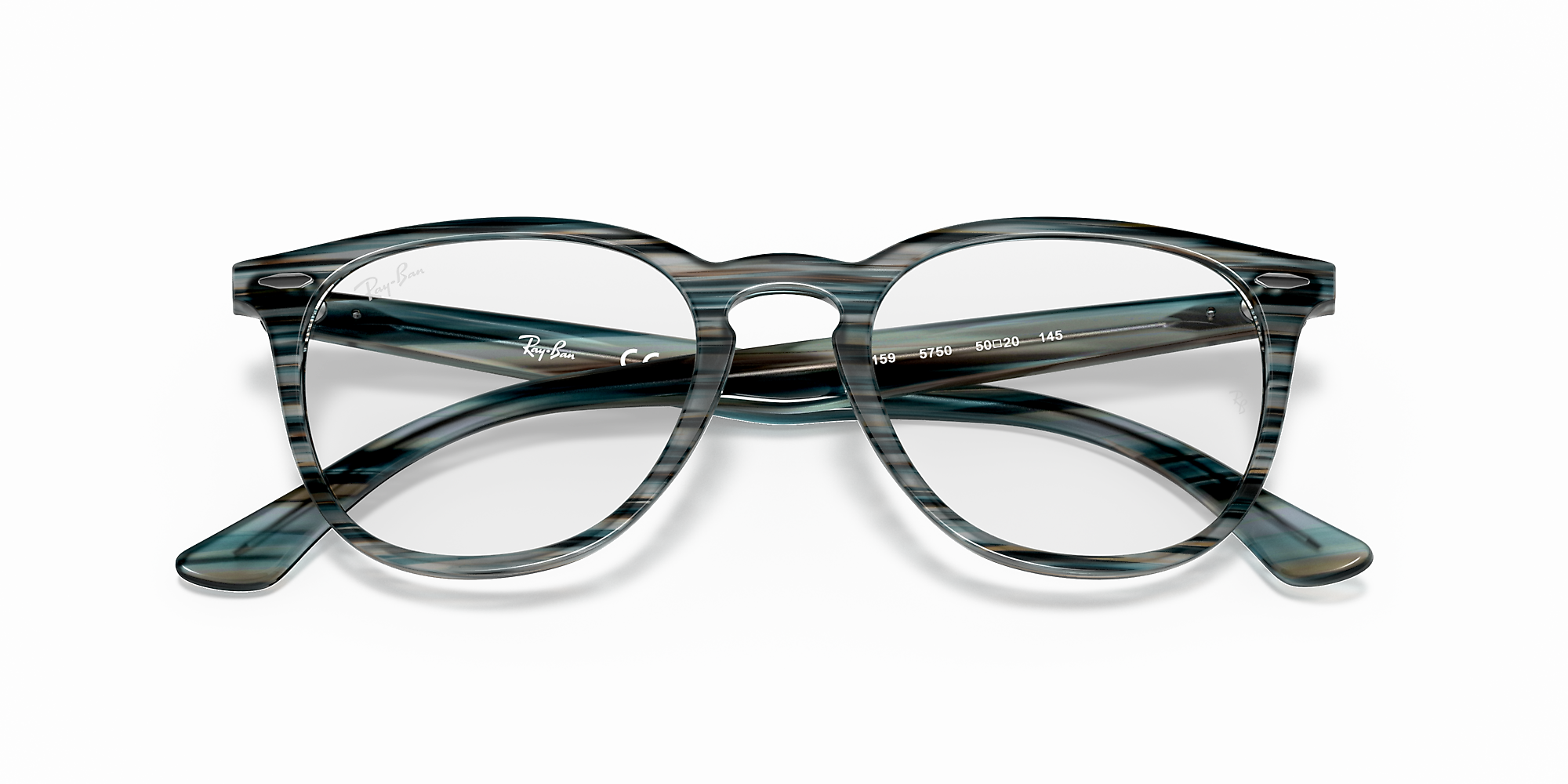 Elevate your fashion and optical standards with Ray-Ban RB7159 Optics. Crafted from durable material, these glasses feature a polished striped blue grey frame in a unique phantos shape that adds a touch of sophistication to any look. The key bridge design adds a modern twist to the traditional silhouette. These eyeglasses are not only stylish but also versatile. Available with prescription lenses.