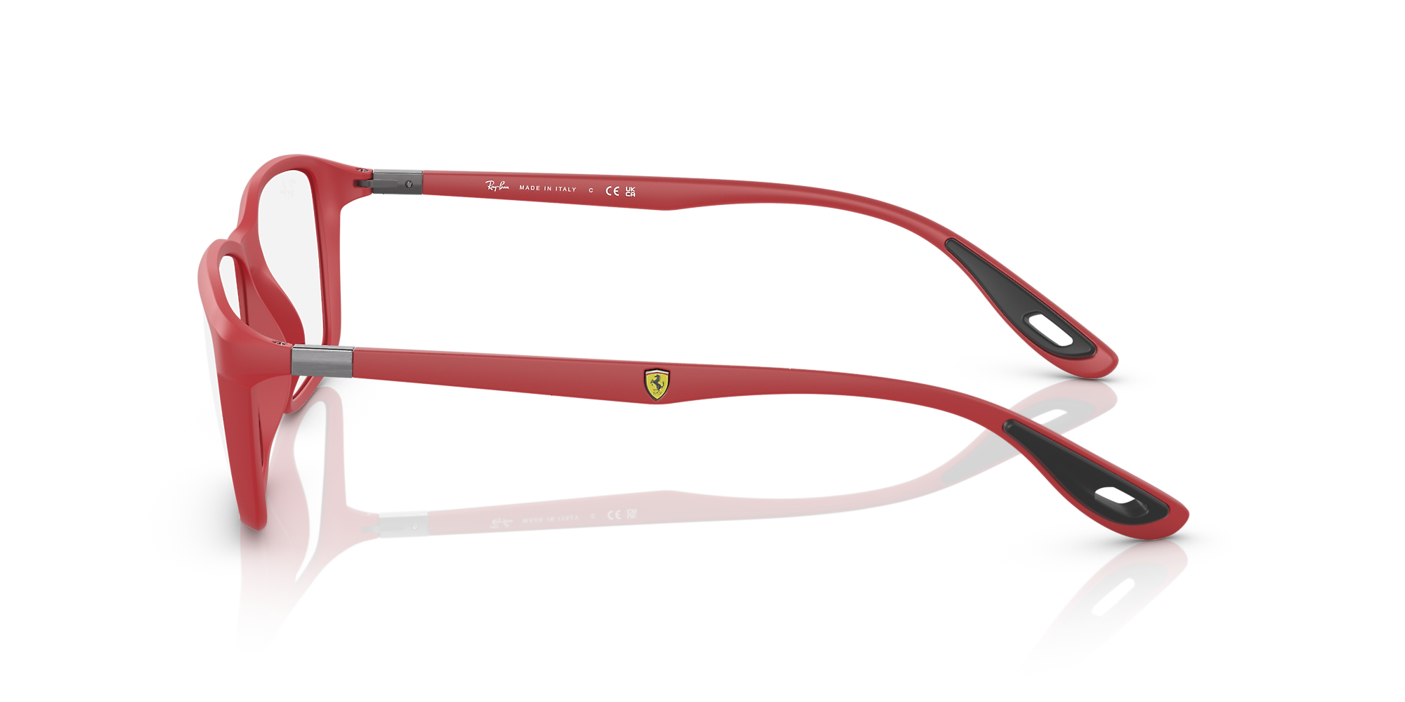 Ray-Ban RB7213M Optics Scuderia Ferrari Collection eyeglasses are a perfect blend of style and performance. The square shape and matte finish give these frames a sleek, modern look. Crafted from peek material, these glasses are lightweight and durable. The red color adds a bold touch to your look. With these shades, you can enjoy both comfort and style while on the road or off.