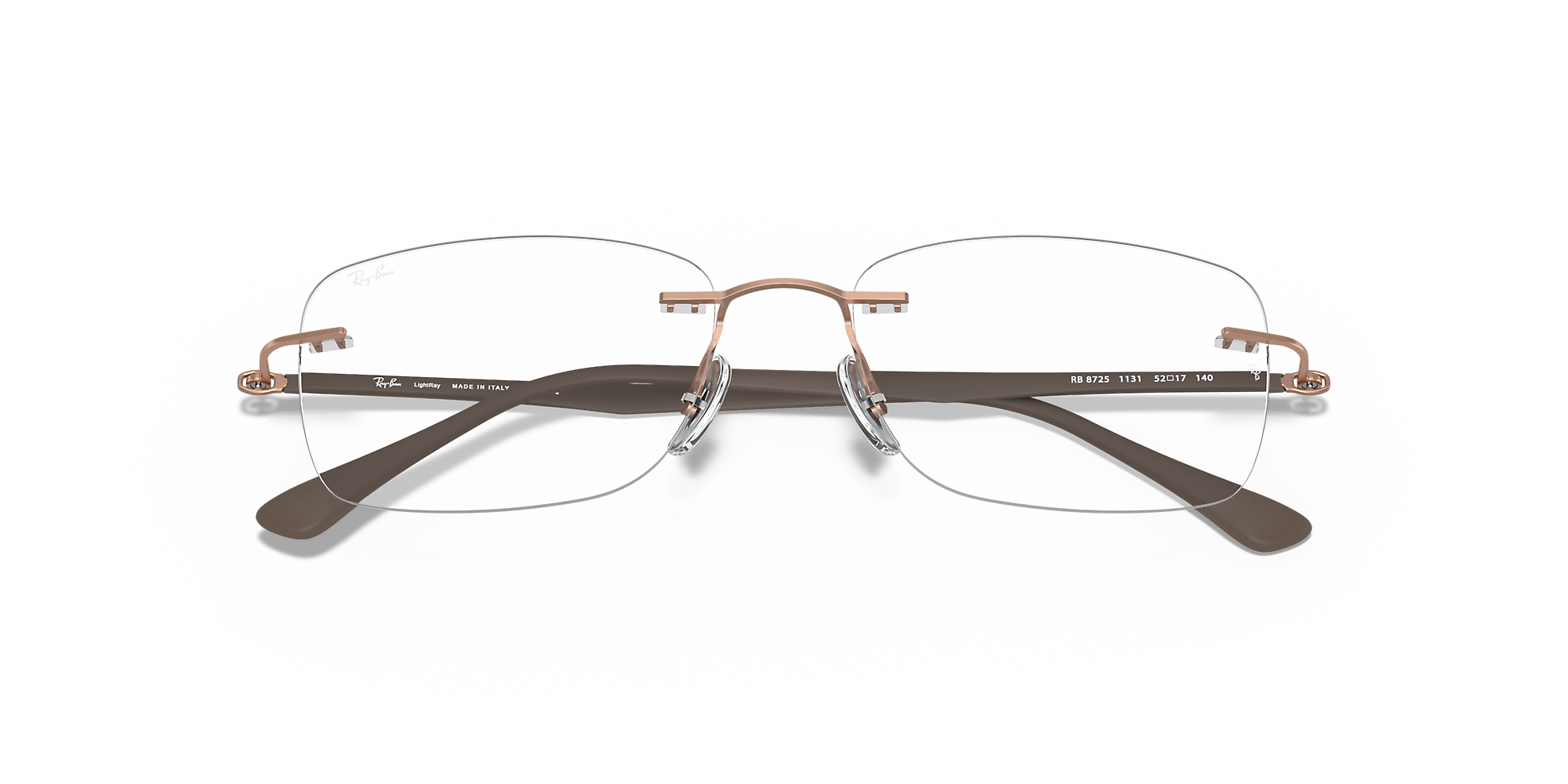 Elevate your style game with Ray-Ban RB8725 Optics. The titanium frame, known for its durability and lightweight properties, is expertly crafted into a sleek rectangle shape that adds a touch of sophistication to any look. The polished light brown finish provides a warm contrast to the frame, creating a unique and stylish aesthetic. These eyeglasses are not only fashionable but also practical. Available with prescription lenses.