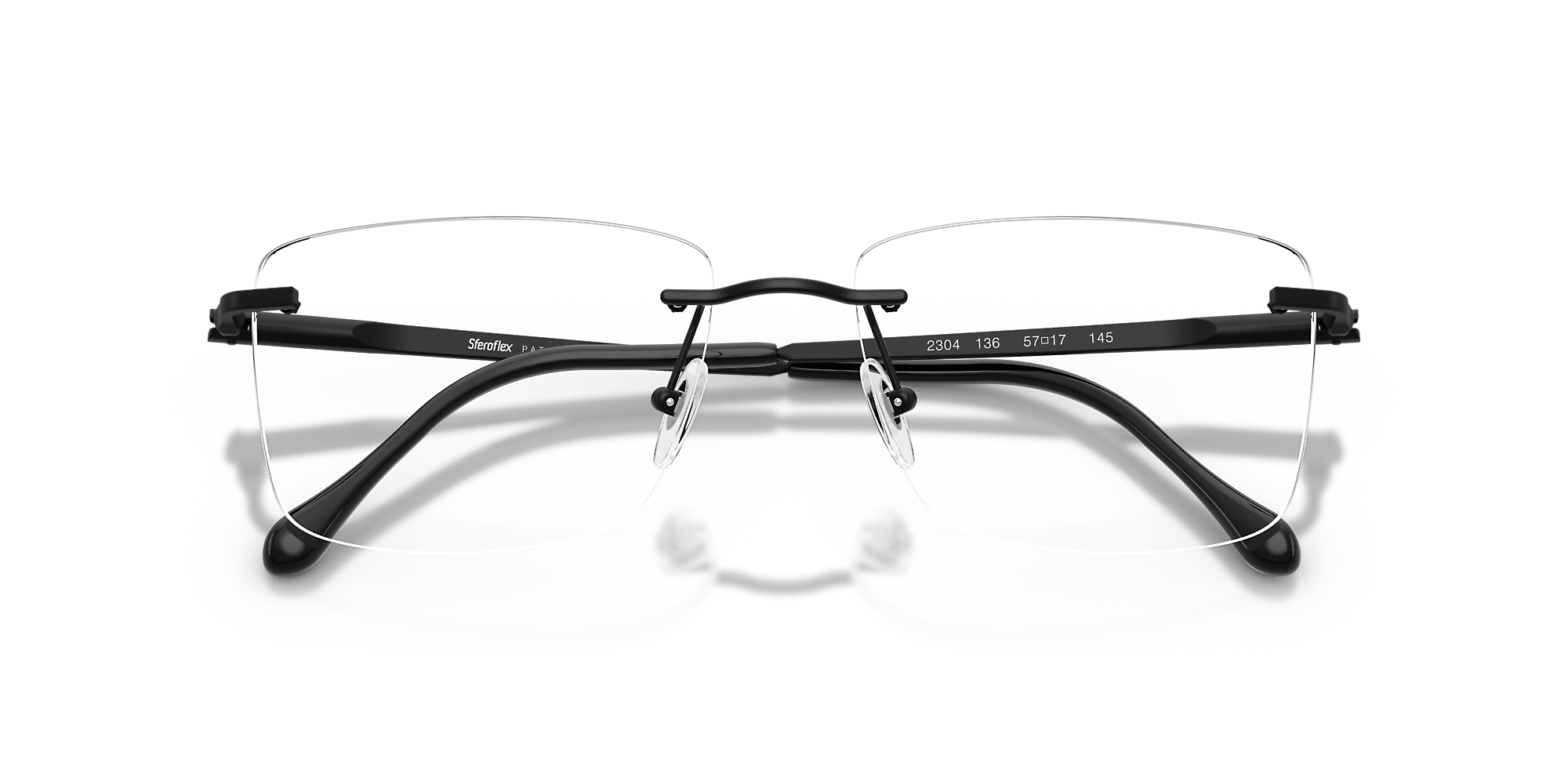 The Sferoflex SF2304 optical glasses feature sleek square frames with sharp angles for a structured, modern look. Crafted from lightweight metal, the design ensures durability and comfort. Frames with adjustable nosepads provide a personalized fit, while the black eyeglasses front adds a versatile, polished finish.