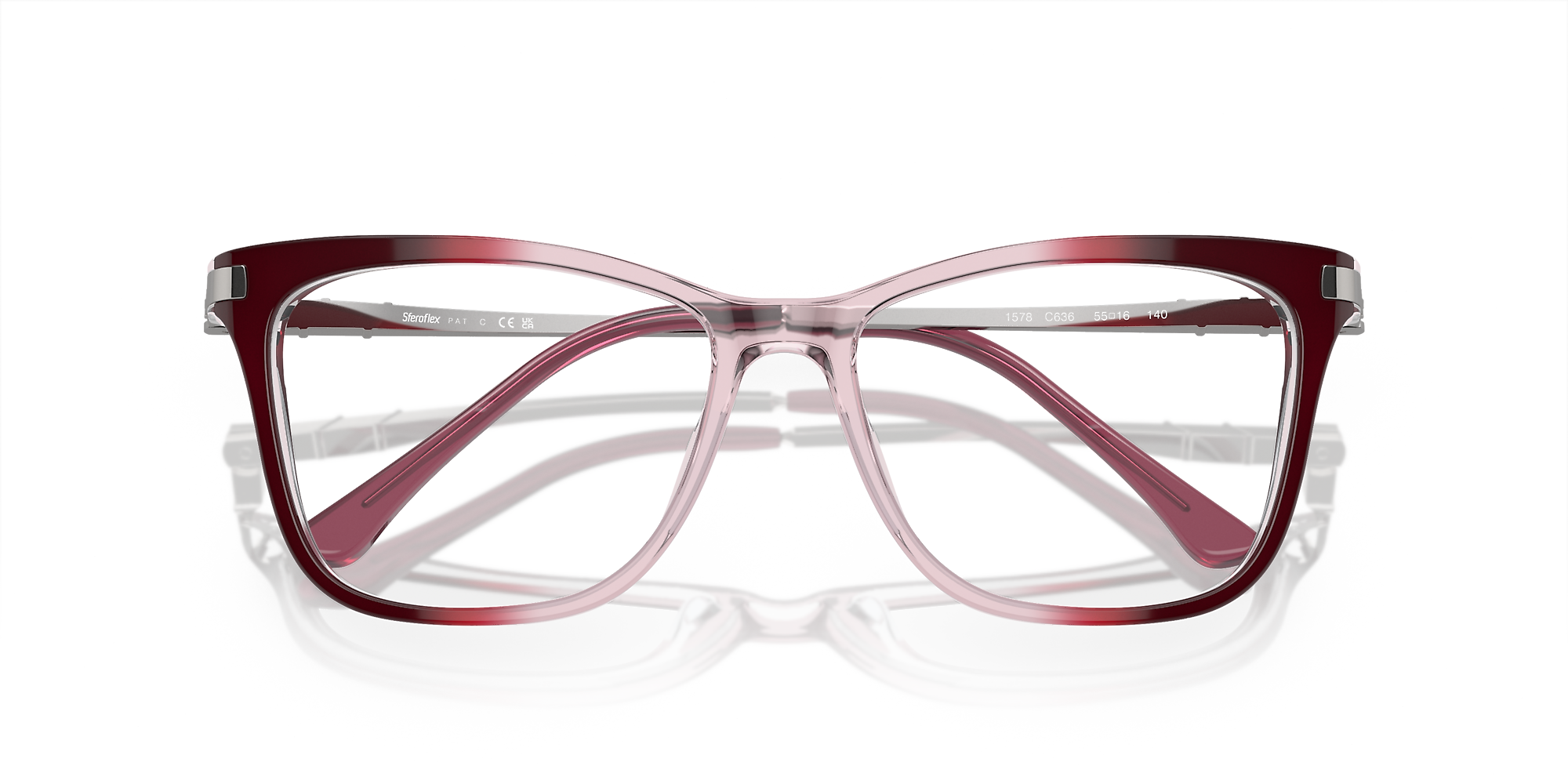 Enhance your style with Sferoflex SF1578 butterfly glasses. These glasses have a special color combination of light pink, purple red, and black in a gradient design. The acetate frame is made for durability and comfort. These frames are a versatile option for anyone looking for a stylish accessory. Available with prescription lenses.