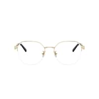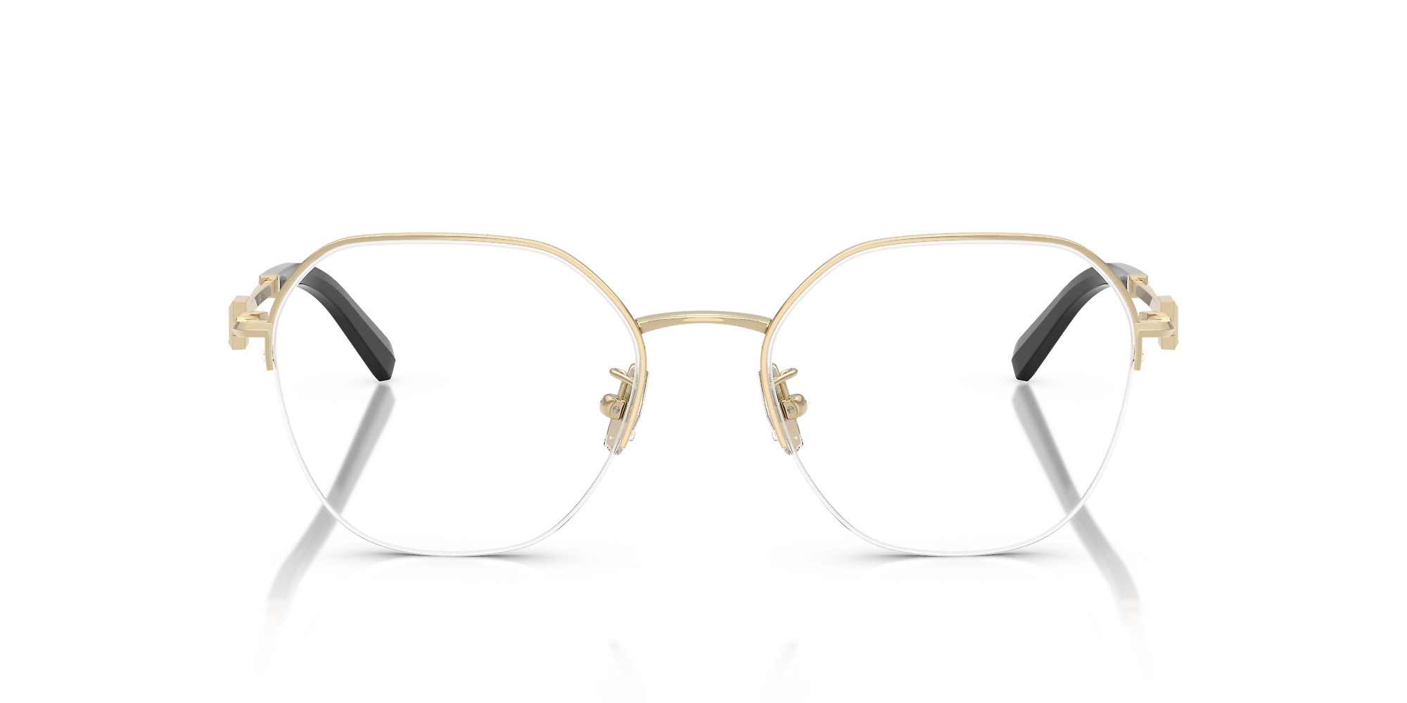 Experience the allure of Tiffany & Co. eyeglasses, a perfect blend of style and functionality. These round-shaped frames are crafted from polished steel in a pale gold color, providing a luxurious and elegant look. The black color detail on the rim adds a touch of sophistication, making these glasses a versatile accessory for any fashion-forward individual. With their timeless design and high-quality material, these shades are sure to become your new favorite pair. Available with prescription lenses.