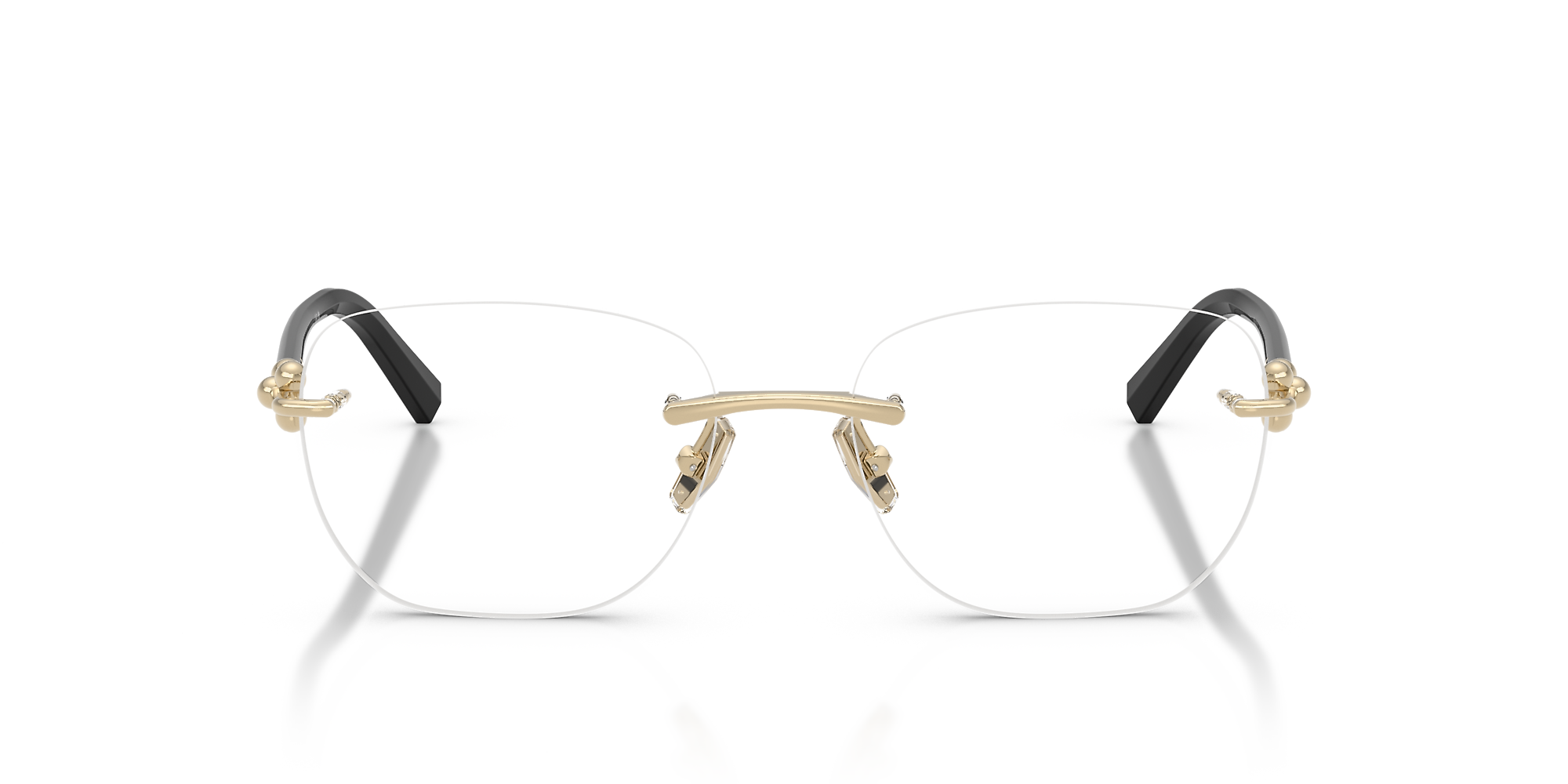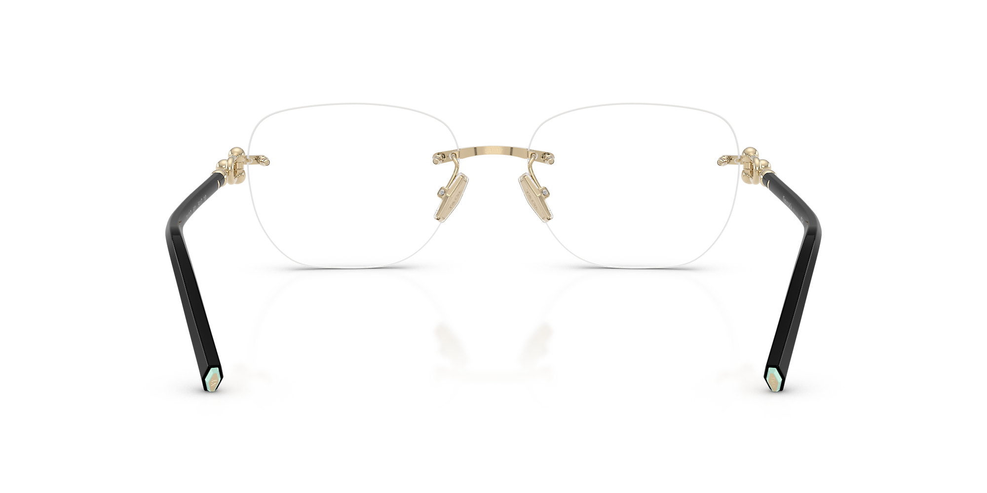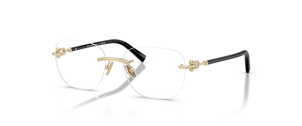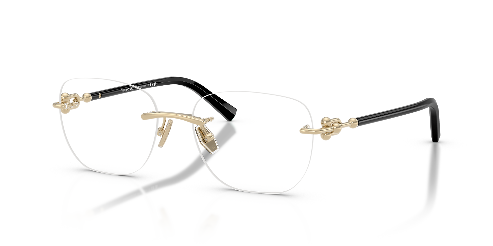Elevate your style with the Tiffany & Co. TF1170D optical glasses. These rimless square unisex frames boast strong lines and sharp angles for a sleek, contemporary look. Crafted from lightweight metal, they feature gold frames and clear lenses for effortless sophistication. Adjustable nose pads and acetate temple tips ensure modern comfort, while iconic gauge links inspired by Tiffany HardWear add a striking touch of refinement. Perfect for unisex wear, these Tiffany & Co. eyeglasses embody timeless elegance with a low-bridge fit.