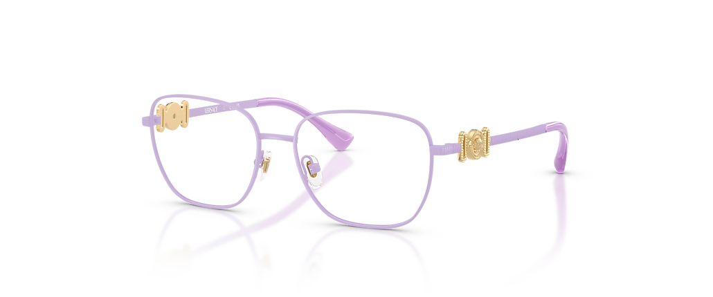 The Versace VK1003 optical glasses blend playful charm with iconic style. Featuring lightweight violet metal frames with a retro-inspired round eyeglasses shape, they exude creativity and sophistication. Adjustable nose pads ensure a comfortable fit, while Medusa Biggie decor adds a striking touch. Perfect for a sleek mini-me look that nods to '90s Versace flair.