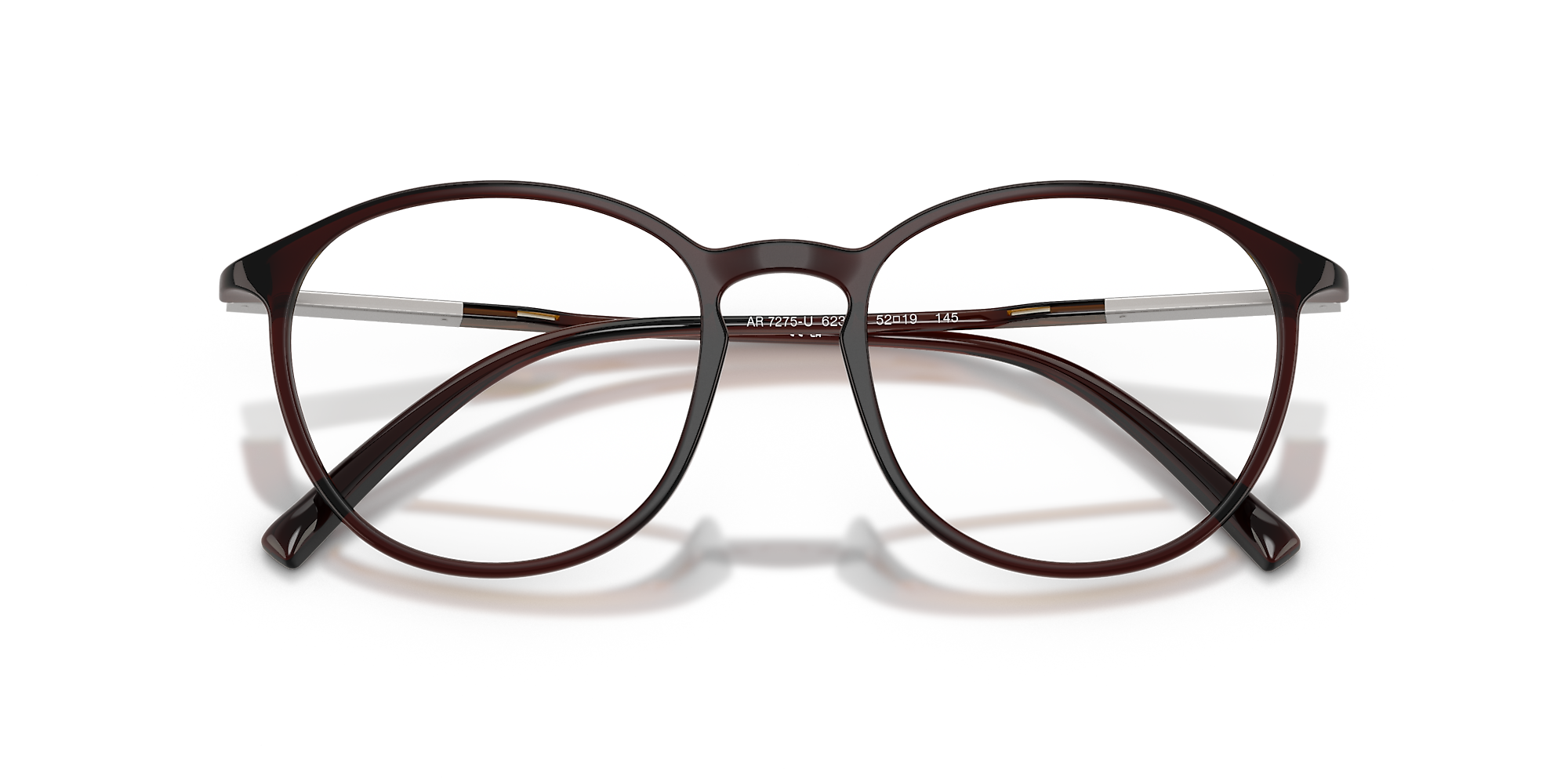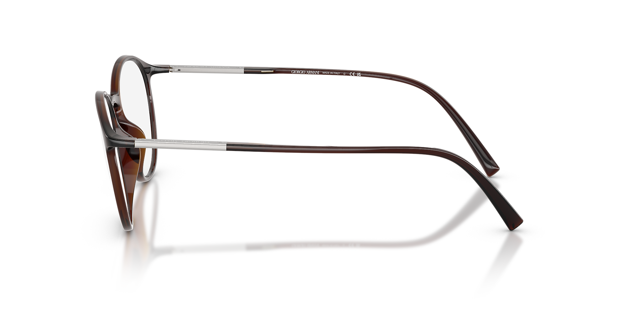 Elevate your fashion quotient with the Giorgio Armani AR7275U eyeglasses. The polished transparent brown frame, paired with a keyhole bridge, gives these glasses a unique and modern look. The phantos shape adds a touch of sophistication to any outfit. These frames are not just stylish but also practical for everyday wear. Embrace your individuality with these exceptional Giorgio Armani shades. Available with prescription lenses.