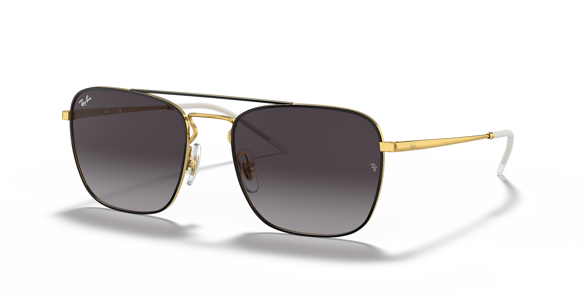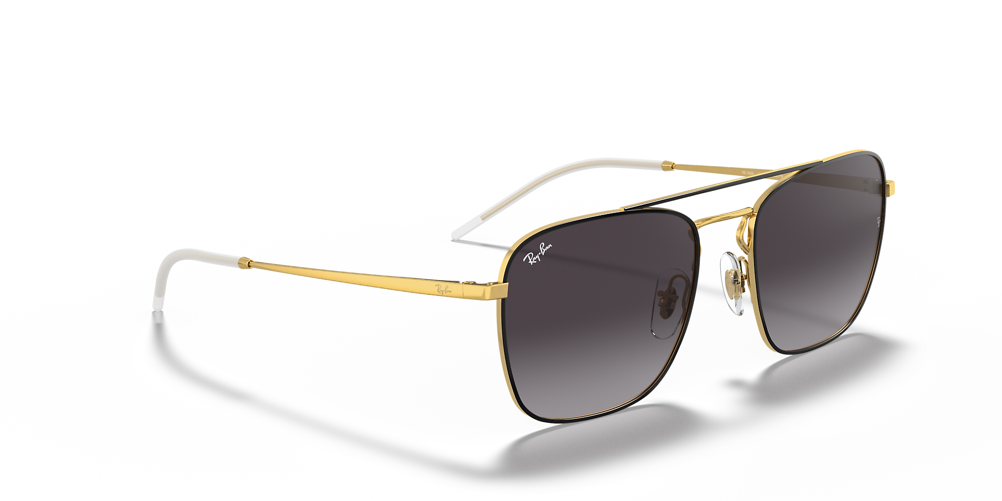 Experience the perfect balance of style and performance with Ray-Ban RB3588 sunglasses. These square-shaped glasses feature a polished black on gold metal frame, offering a sleek and modern look. The gradient grey lenses add a touch of sophistication, while the key bridge design adds an element of vintage charm. With their high-quality construction and timeless design, these shades are sure to turn heads. Available with prescription lenses.
