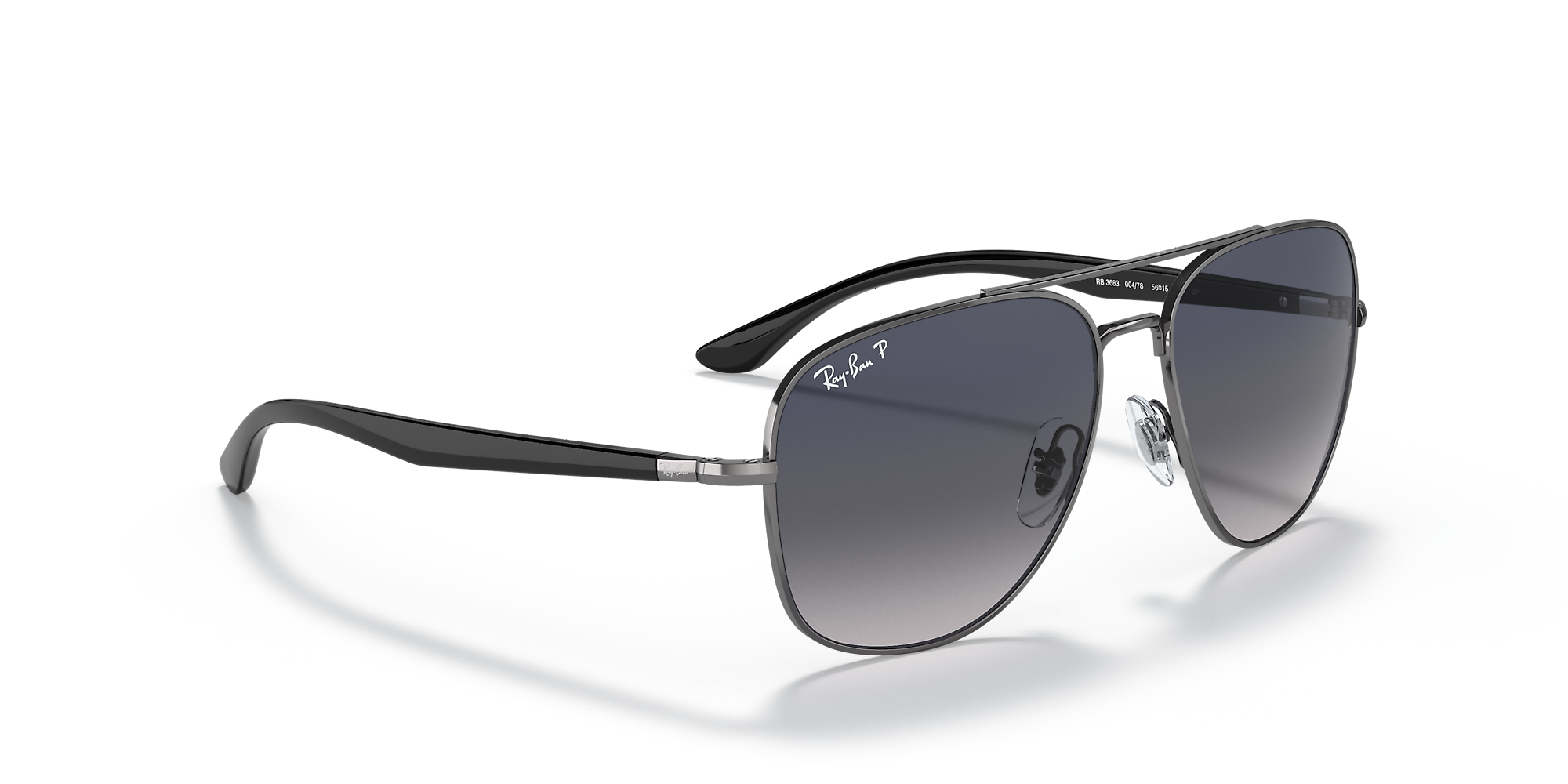 Experience the epitome of style and performance integration with Ray-Ban RB3683 sunglasses. The square shape and polished gunmetal frame, crafted from durable metal, exude a timeless appeal. The gradient lenses transition from a darker shade at the top to a lighter one towards the bottom, offering superior glare protection while enhancing visual clarity. The polarized lenses further reduce glare and provide excellent vision in any lighting condition. These shades feature a unique blue/grey color that adds a touch of sophistication to your look.