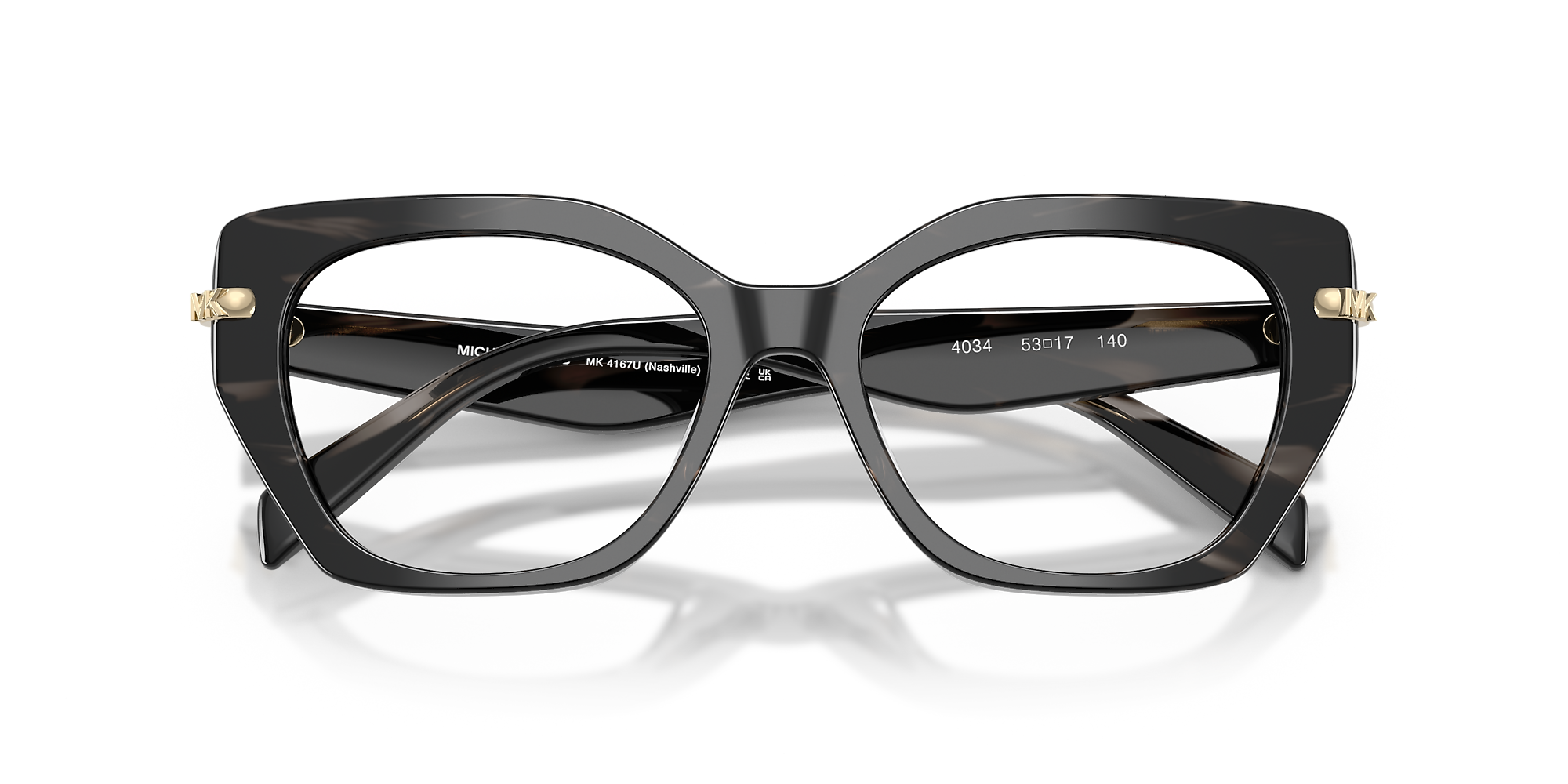 Experience the allure of the Michael Kors Nashville eyeglasses, a testament to the brand's signature blend of style and sophistication. Crafted from durable acetate, these irregular-shaped frames feature a polished black horn finish that adds a touch of elegance to any look. The unique design makes these glasses a standout accessory for those who appreciate individuality.