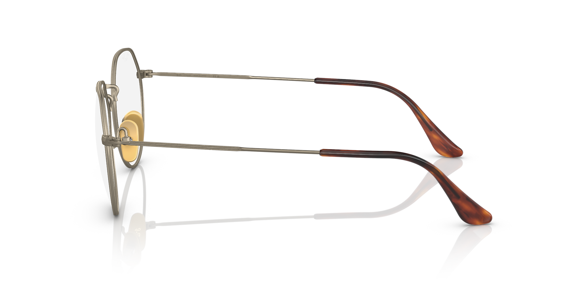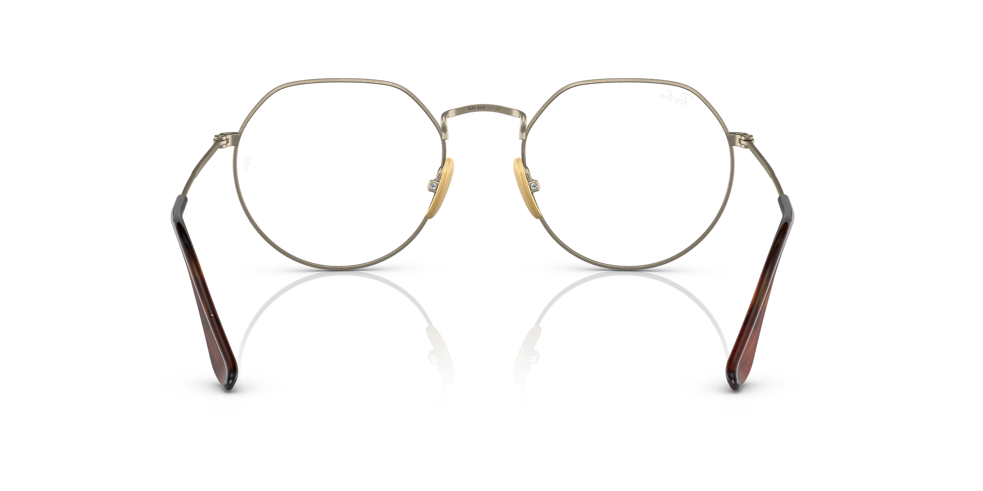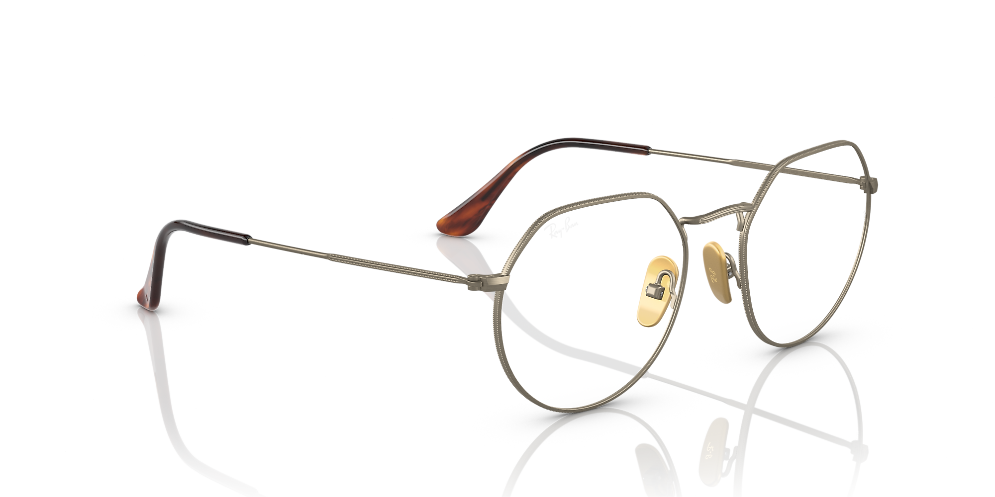 Experience the epitome of modern sophistication with Ray-Ban Jack Titanium Optics. Crafted from titanium, these eyeglasses feature an irregular shape that adds a unique touch to your look. The matte gold finish on the frame color gives it a luxurious feel. These shades are designed to provide you with comfort and style simultaneously.
