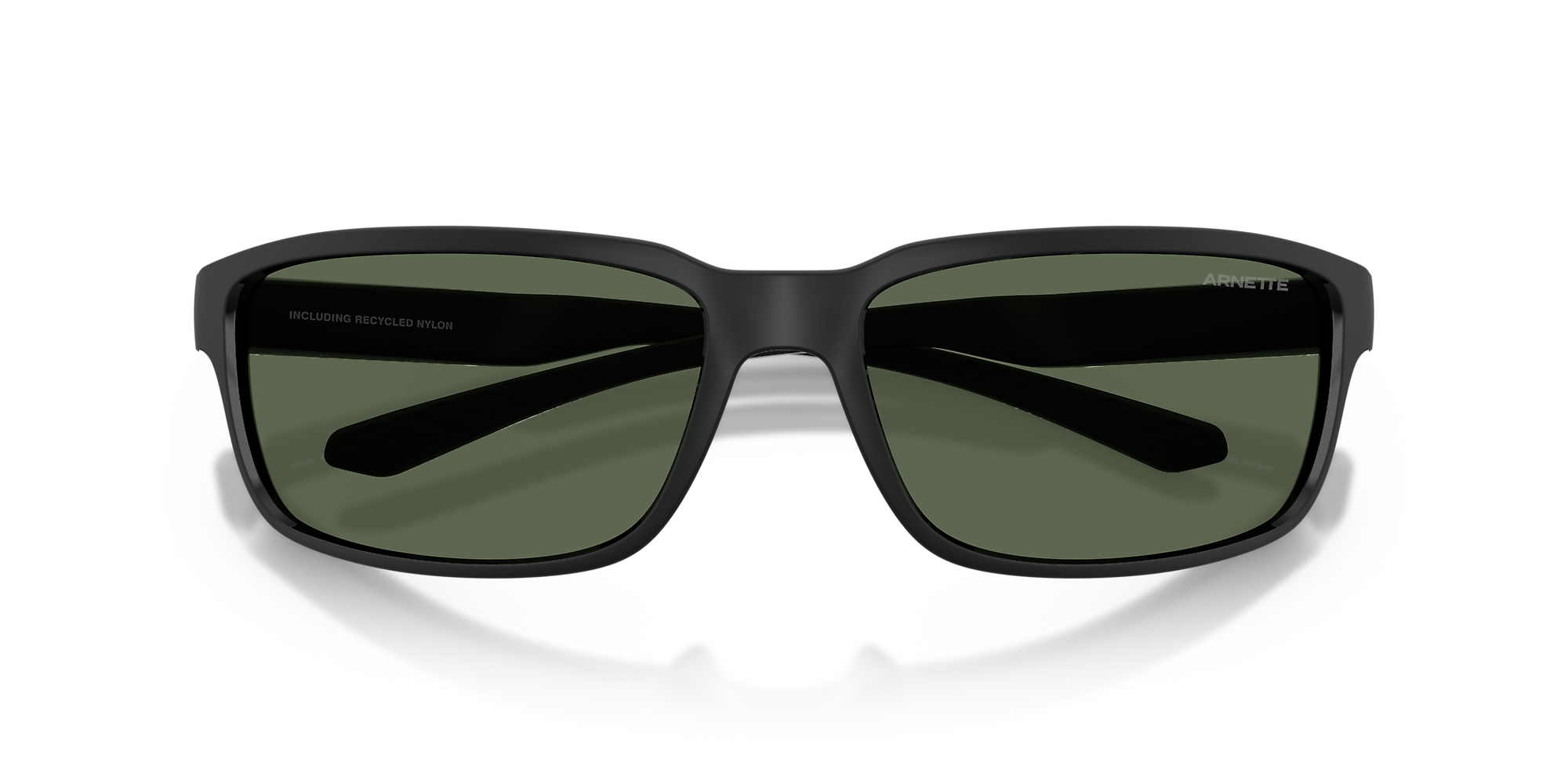 Elevate your urban style with the Arnette AN4373 black sunglasses. These rectangular frames, crafted from acetate, feature a bold black front and dynamic injected temples with a zigzag design for added edge. Green lenses with a classic tint provide 100% UVA/UVB protection, combining function with effortless flair. A tactile "in the mold" pattern on the internal tips adds a signature touch of authenticity to these sleek Arnette sunglasses.