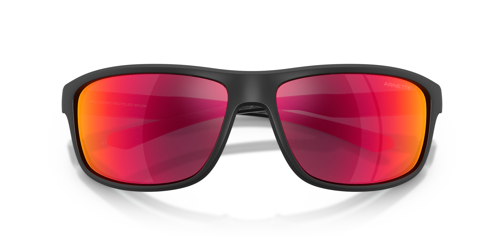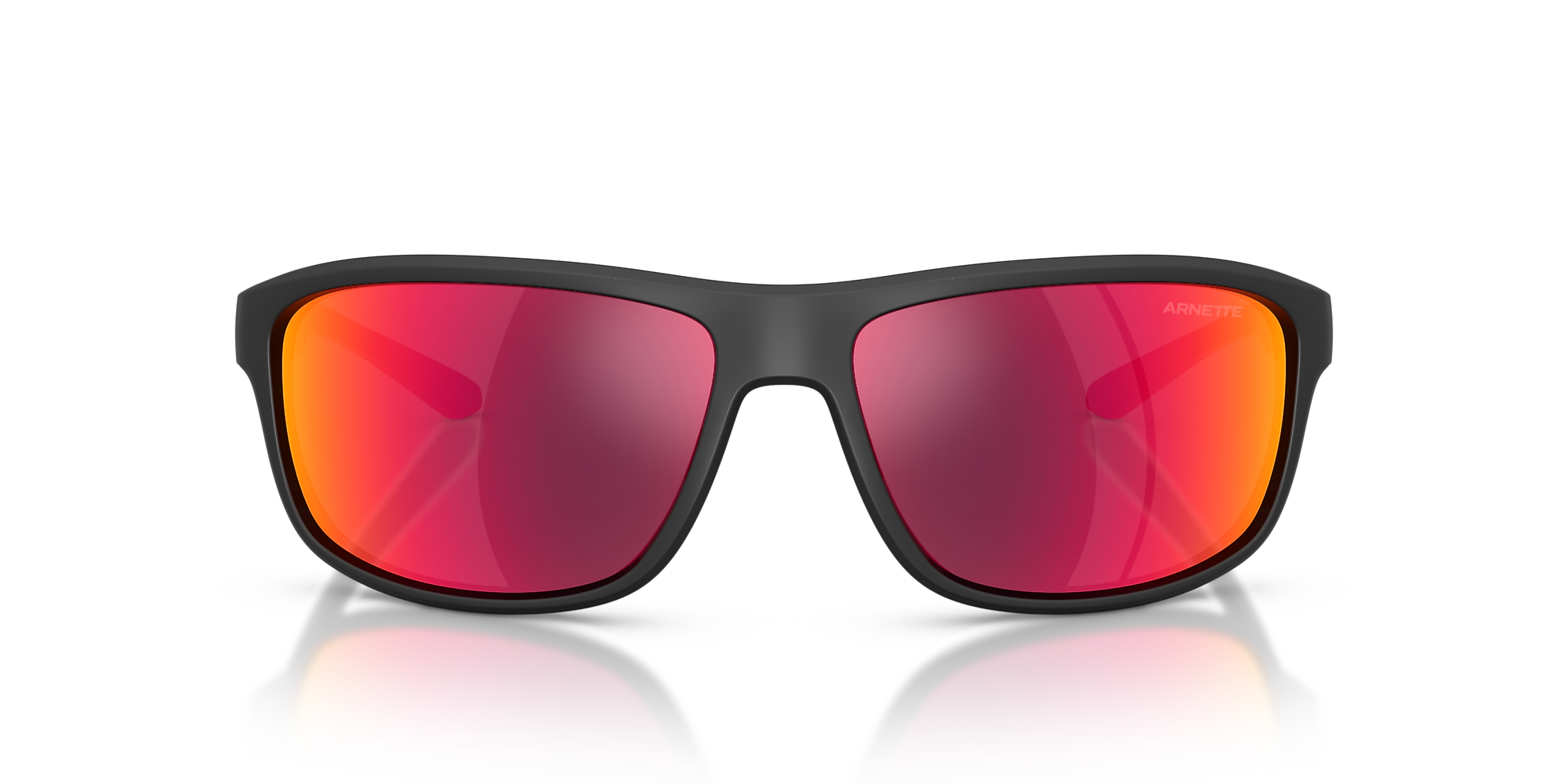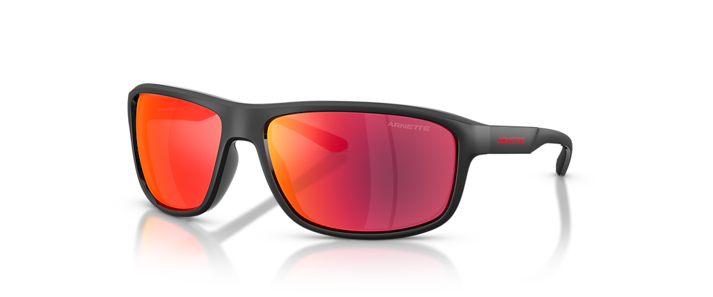Elevate your urban style with the Arnette AN4374 sunglasses. These sporty, wrapped rectangular frames offer a sleek look with dimensional details and beveled edges. Crafted from durable acetate, with injected temples for comfort, they ensure all-day wearability. The black sunglasses perfectly complement the mirrored red lenses, designed to reduce glare and intense light while adding a metallic flash effect. A bold choice for adults seeking versatile eyewear meant for active, inner-city living.