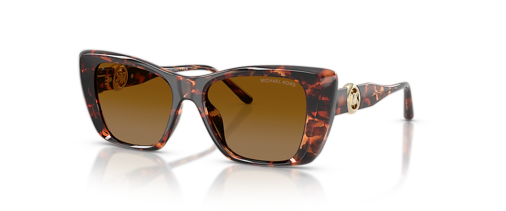 Elevate your style with the Michael Kors MK2270U Tokyo sunglasses. These bold square sunglasses, crafted from premium acetate, feature sharp angles and beveled edges for a modern, structured look. The tortoise front pairs beautifully with brown gradient lenses, providing a sophisticated finish. Polarized sunglasses technology reduces glare for improved clarity, while injected temples ensure lasting comfort. Complete with the debut MK Pop Charm logo and metal hardware inspired by the iconic Michael Kors accessories line, these glamorous Michael Kors sunglasses embody contemporary feminine charm.