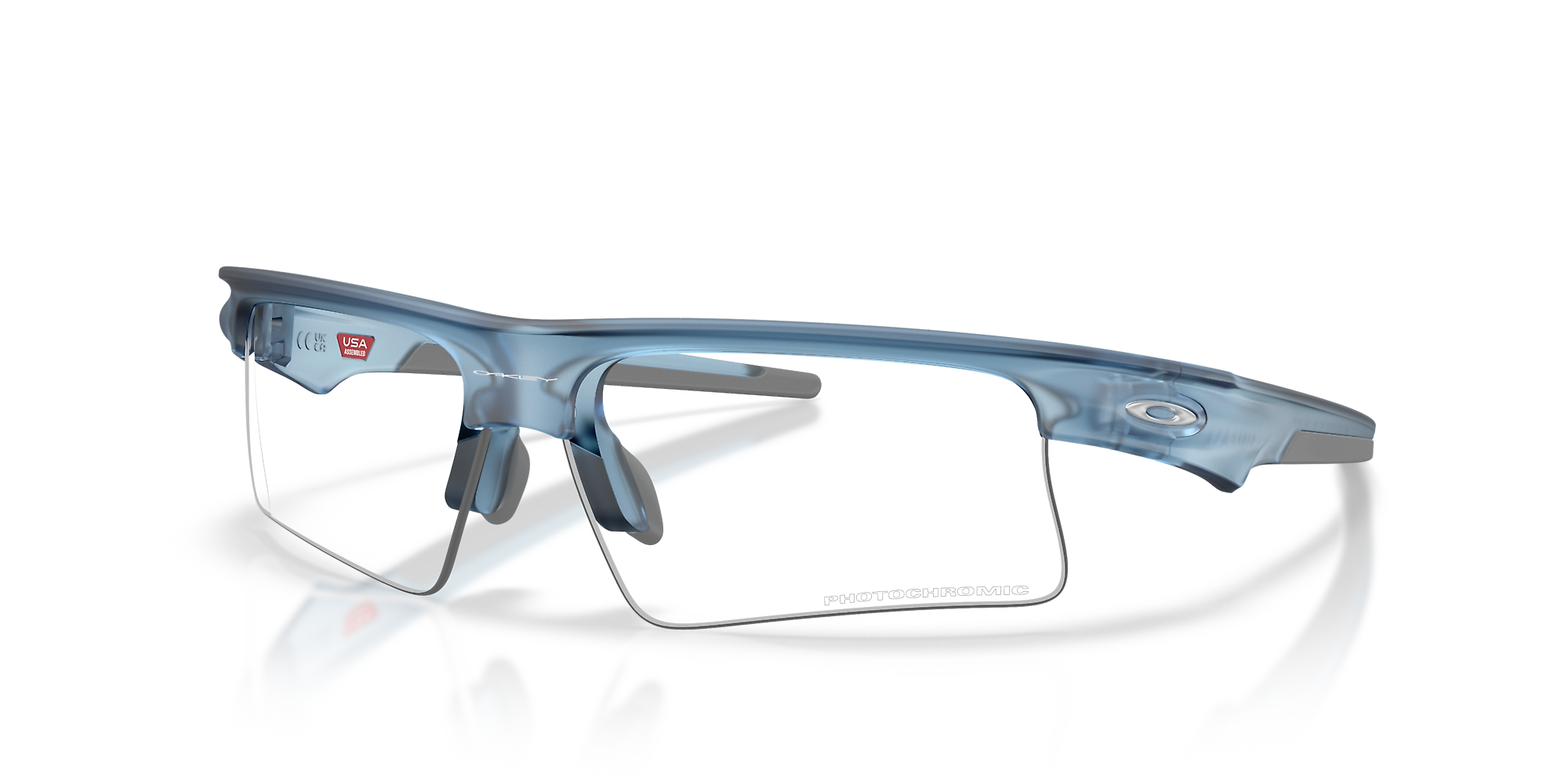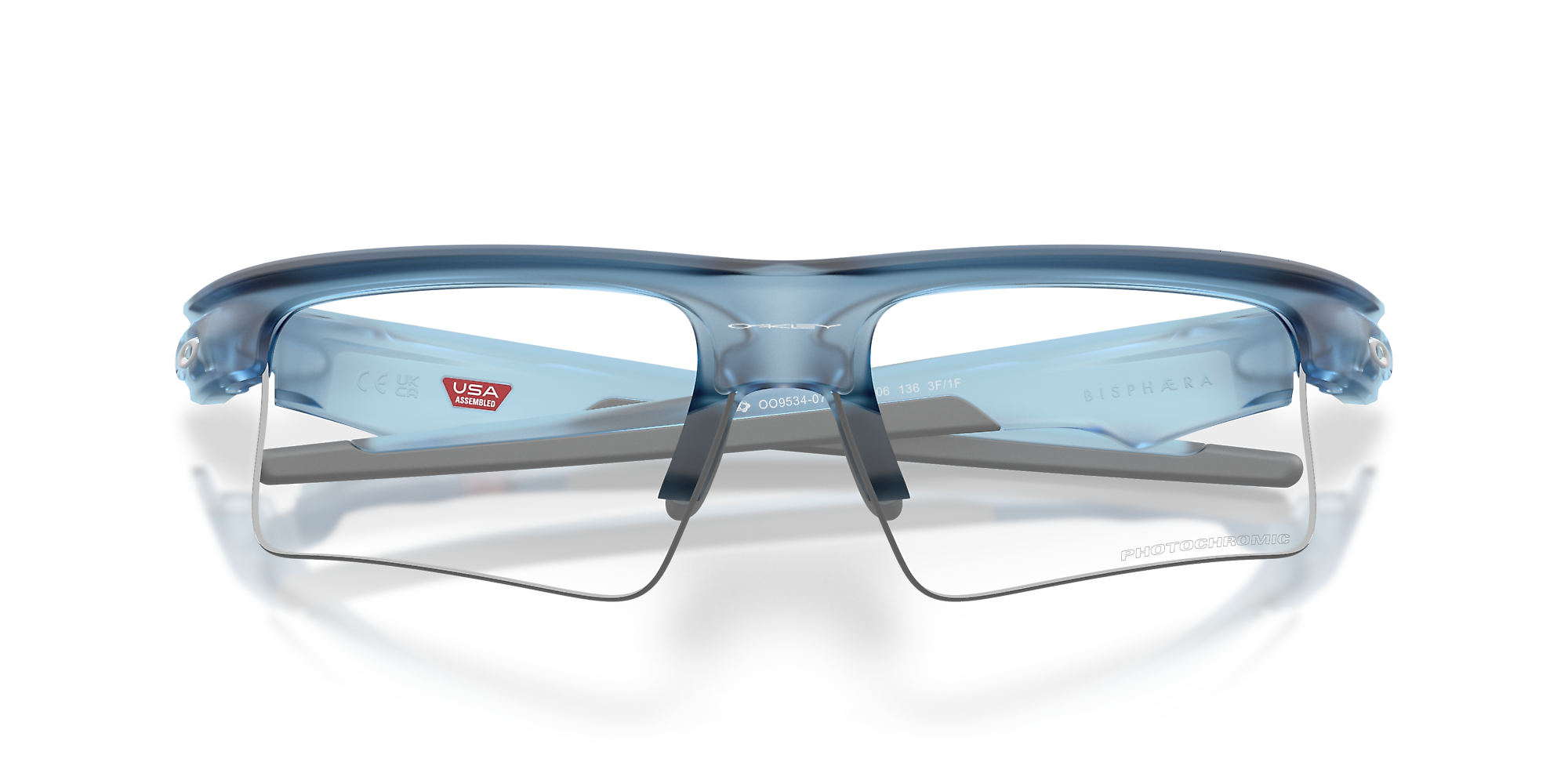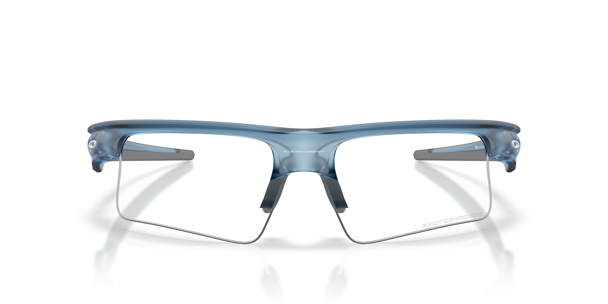 Fuel your drive with the Oakley OO9534 Bisphaera™ Speed. These semi-rim rectangular frames, in bold blue, offer a lightweight and modern edge crafted from durable acetate. Engineered with a photochromic lens treatment, the transparent lenses adapt seamlessly to changing light conditions while a mirrored coating reduces intense glare. Designed for momentum, this distinctive twin-lens style brings precision, coverage, and versatility to athletes at every level, making them an ideal choice for those seeking Oakley sunglasses with innovative design.