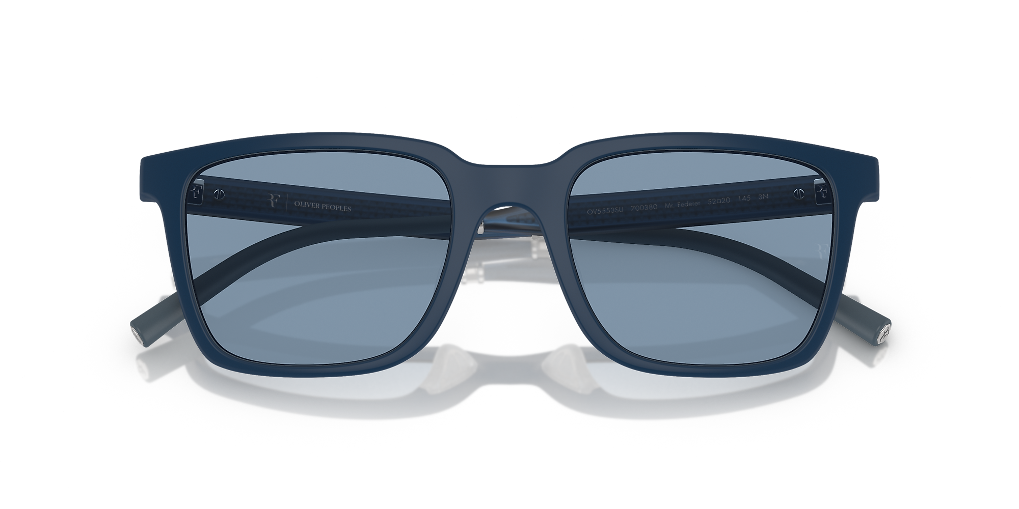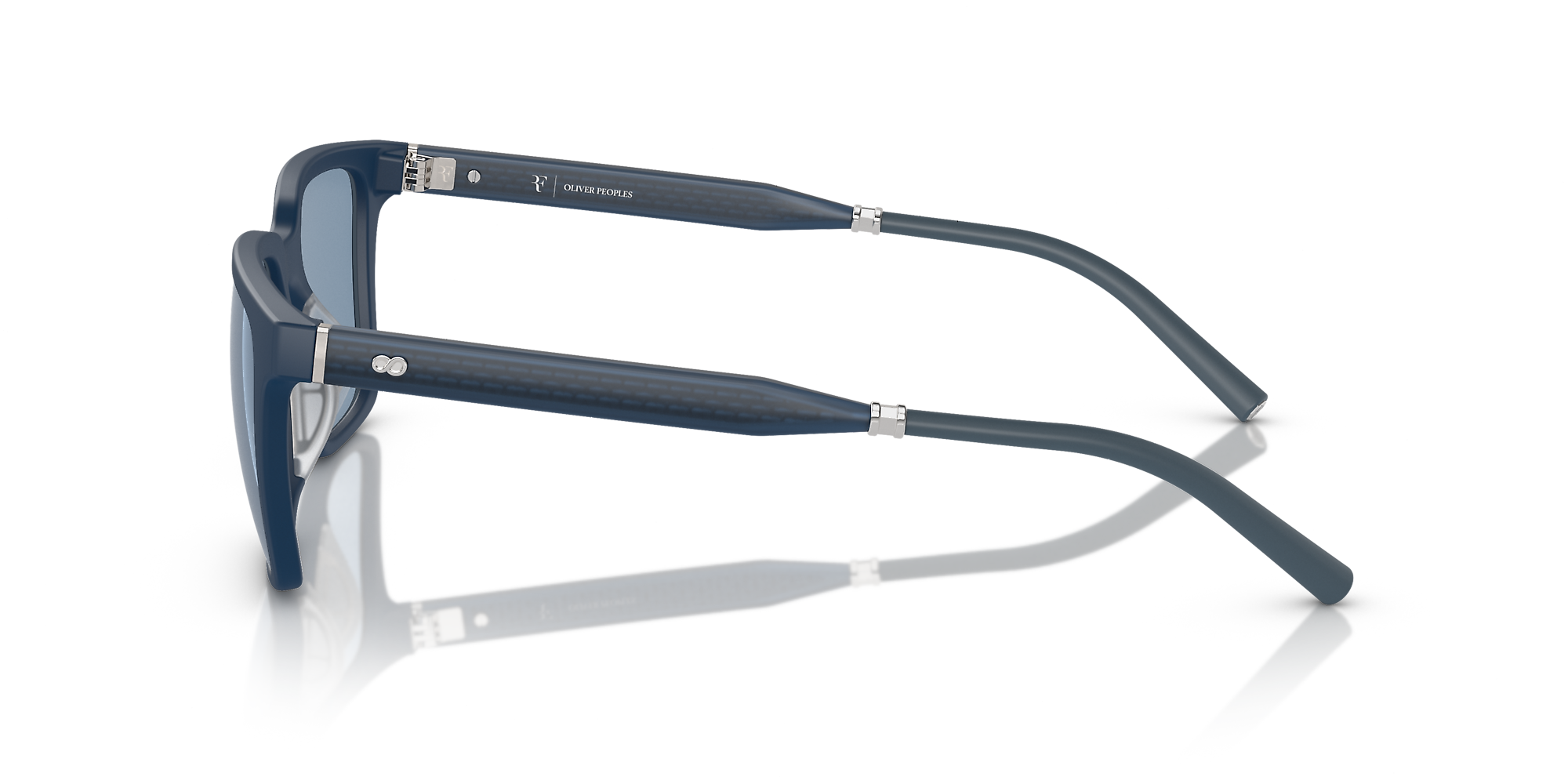 Oliver Peoples Mr. Federer Sun shades are a perfect blend of style and performance. These glasses feature a unique rectangle shape, crafted from durable rubber material in a semi-matte blue ash finish. The solid color lens treatment is in marine, adding to the overall appeal of these exclusive Sun. With Roger Federer's signature on the temple and his iconic number seven embroidered on the side, these shades are not only high-performing but also a stylish accessory for any collection. Available with prescription lenses.