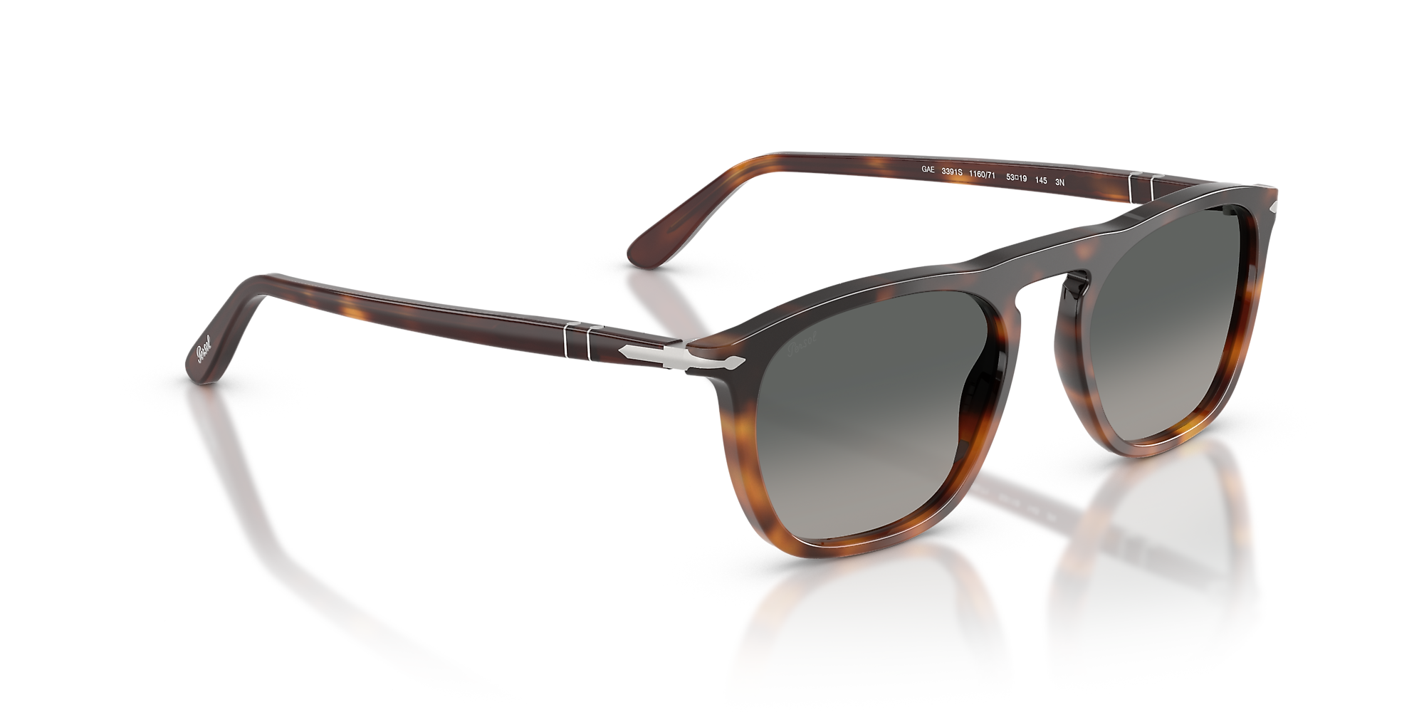 The Persol PO3391S Gae sunglasses embody timeless refinement with a modern edge. The square acetate frames, featuring sharp lines and a sculptural key-hole bridge, exude vintage inspiration infused with contemporary character. Polished gold fronts pair effortlessly with gradient grey lenses, offering understated sophistication. Iconic Supreme Arrow temples highlight the brand's handcrafted Italian heritage, ensuring quality and distinction in every detail.