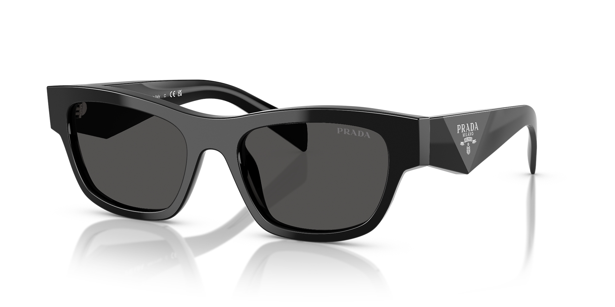 Elevate your fashion while optimizing utility with Prada PR B09S. These butterfly-shaped glasses features a polished black acetate frame that exudes elegance and sophistication. The solid color dark grey lenses add a touch of mystery, making these shades perfect for any occasion. With Prada, you can never go wrong when it comes to style and quality. Available with prescription lenses.