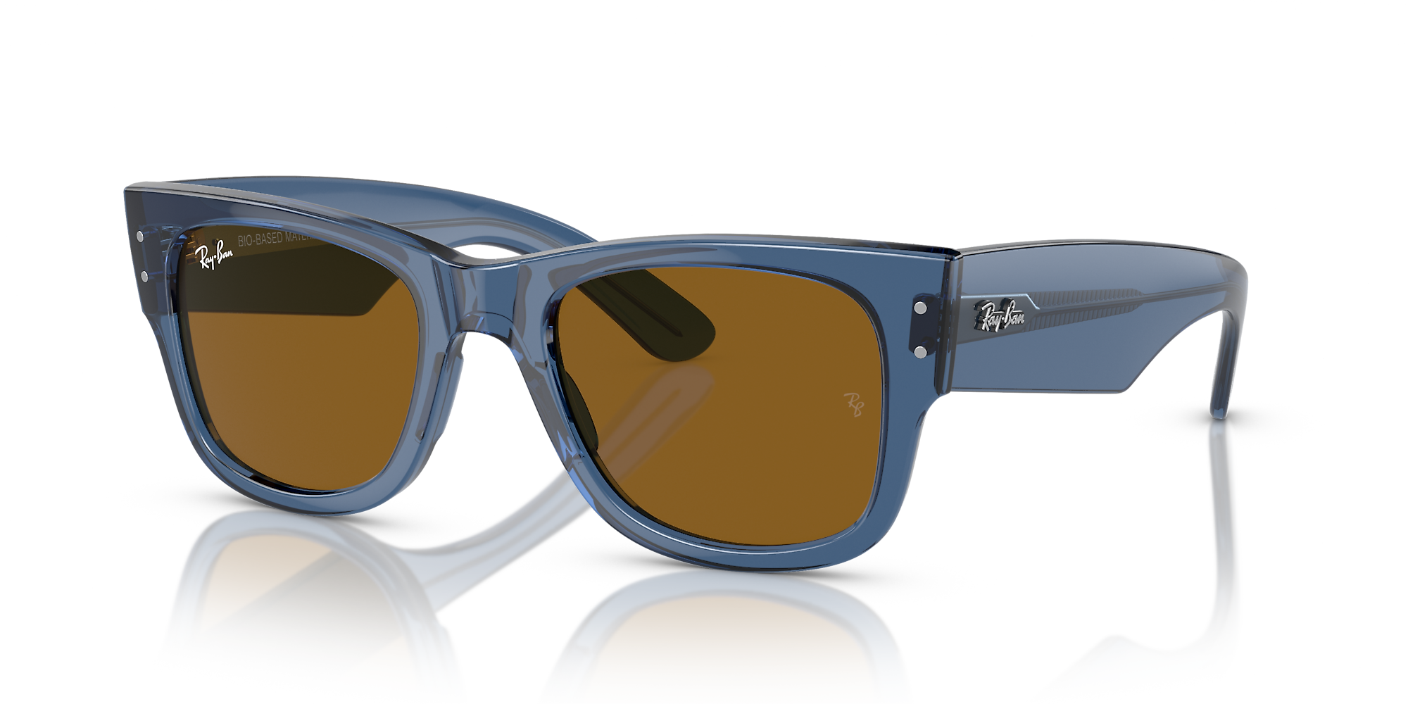 Experience the perfect blend of style and sustainability with Ray-Ban Mega Wayfarer Bio-Based sunglasses. Crafted from a bio-based material, these glasses are not only eco-friendly but also durable. The square shape and polished transparent blue frame color offer a modern twist to the iconic wayfarer design. The brown lenses add a touch of sophistication to the overall look. With these shades, you can enjoy the sun in style while making a positive impact on our planet.