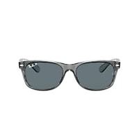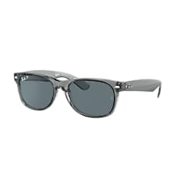 Ray-Ban New Wayfarer Classic sunglasses re-introduce a classic shape with a modern twist. The square-shaped lenses and polished transparent grey frame offer a sleek, contemporary look. The dark blue polar lenses provide superior glare reduction and clarity, making them ideal for outdoor activities. These shades are not just stylish but also functional. Available with prescription lenses.