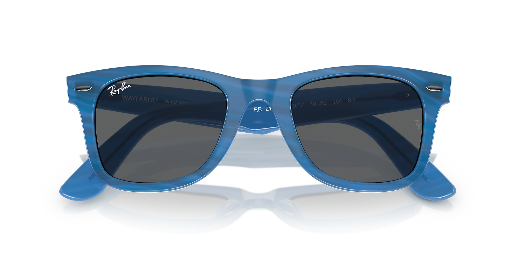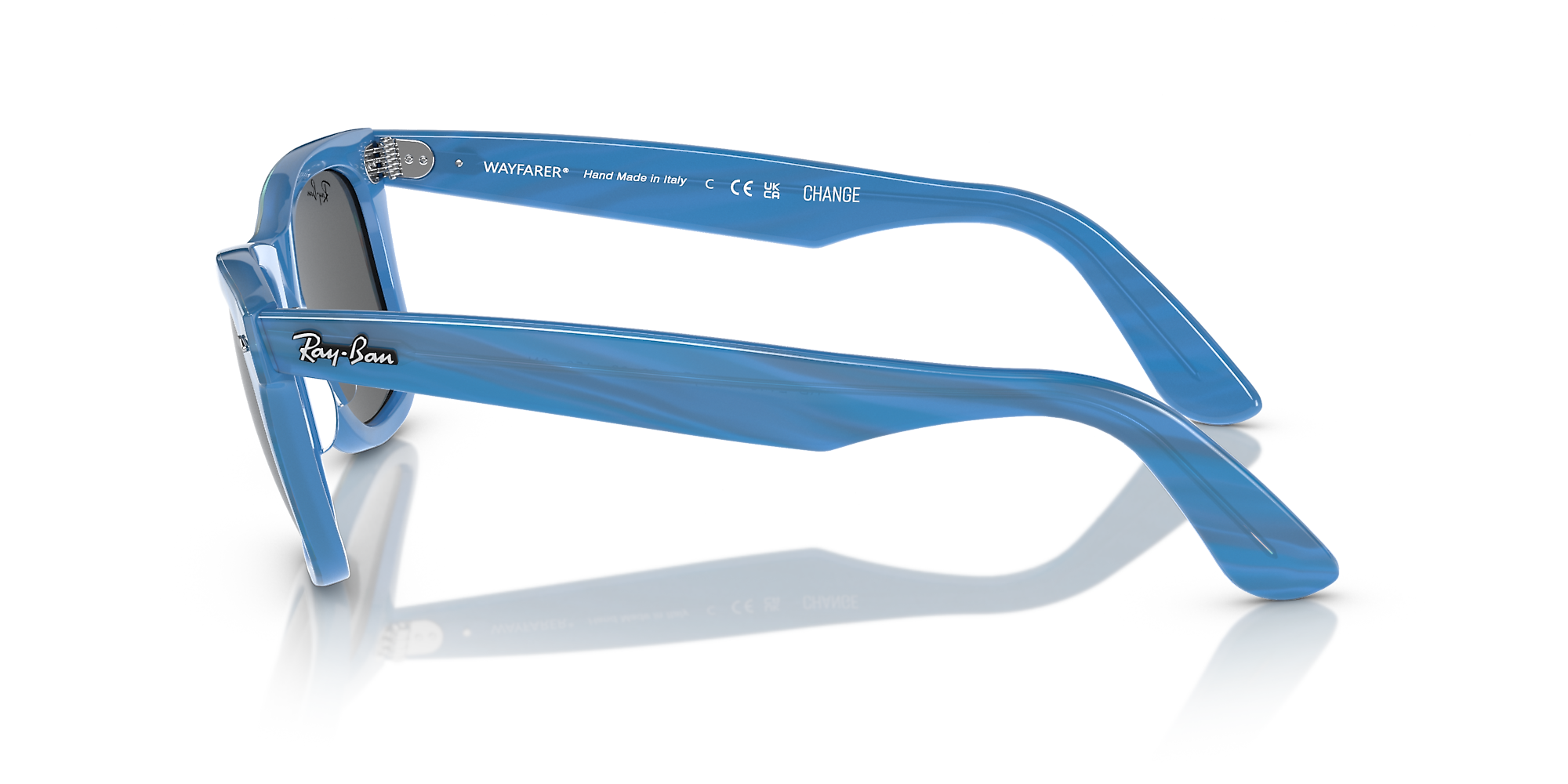 Elevate your style quotient with Ray-Ban Original Wayfarer Change. The square shape and polished photo striped blue frame add a modern twist to the iconic design. Crafted from durable acetate, these shades are designed to last. The solid color treatment of the lenses in dark grey provides excellent sun protection while maintaining a sleek look. These glasses are a versatile choice for everyday wear. Available with prescription lenses.