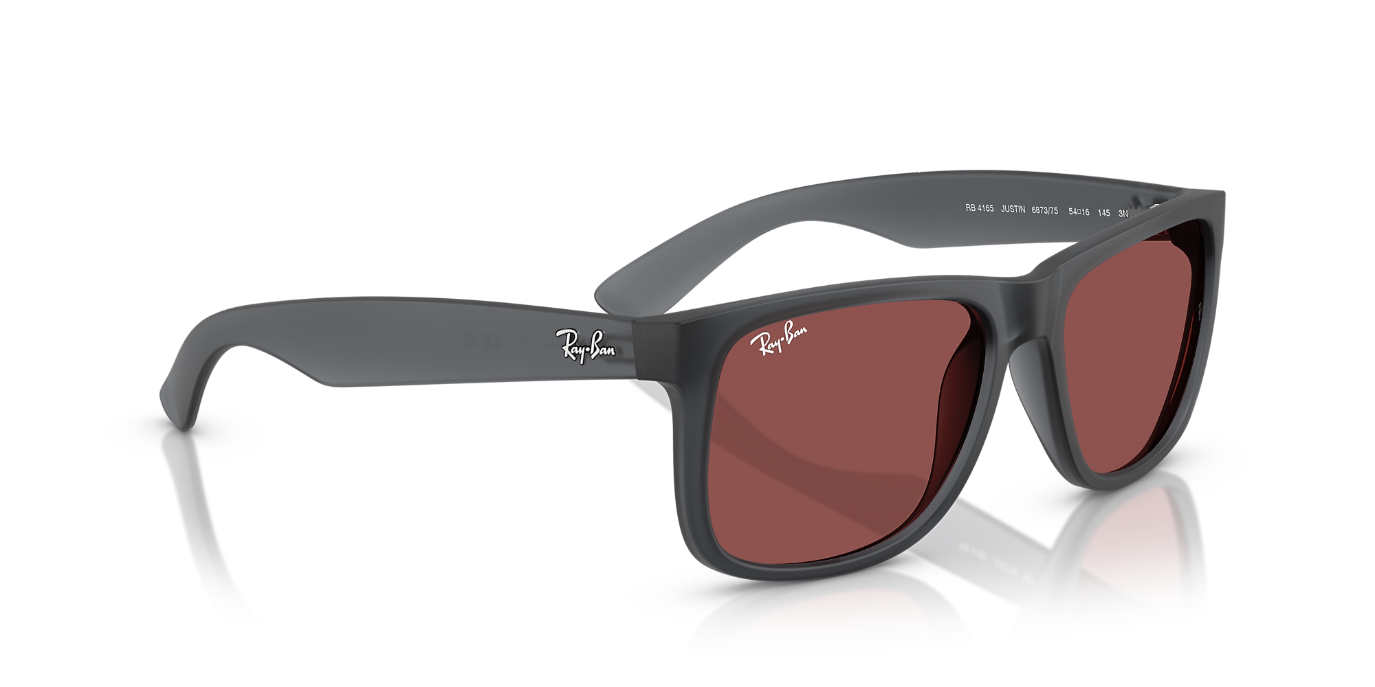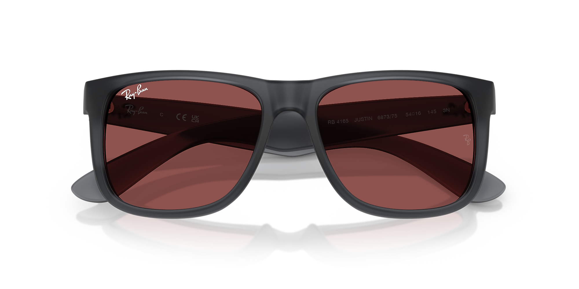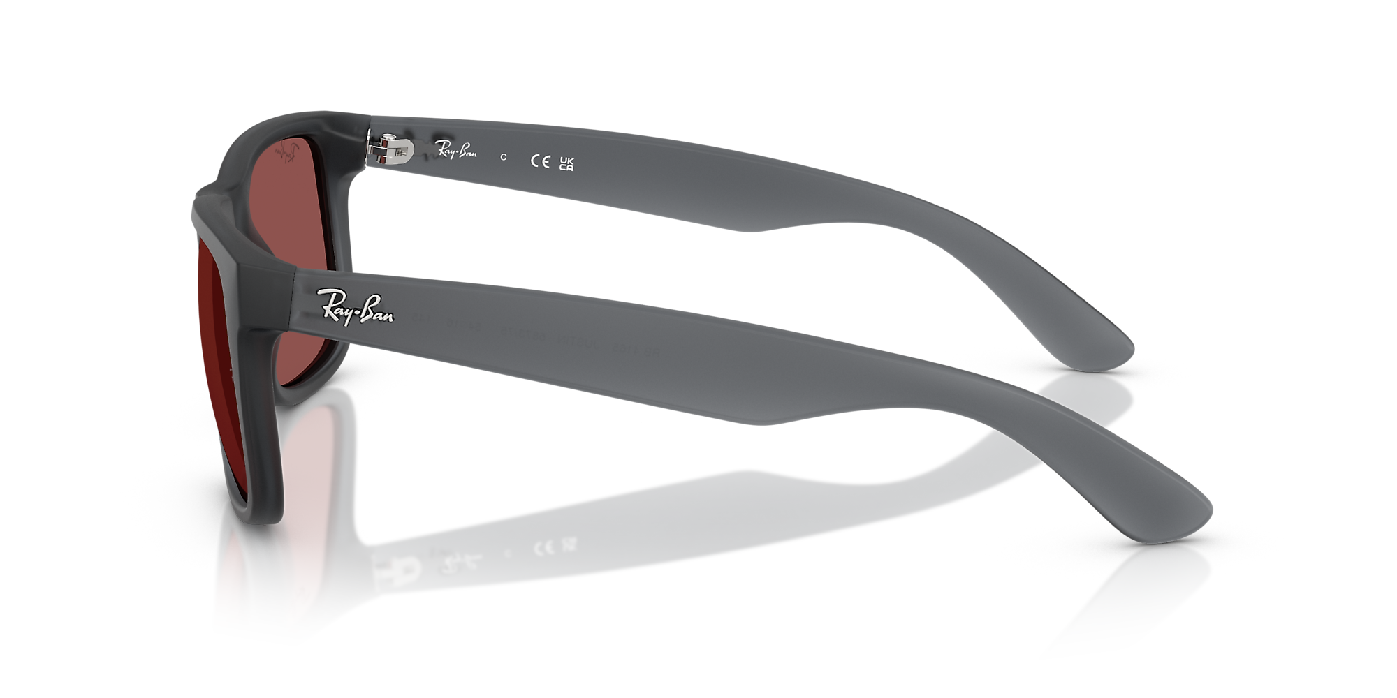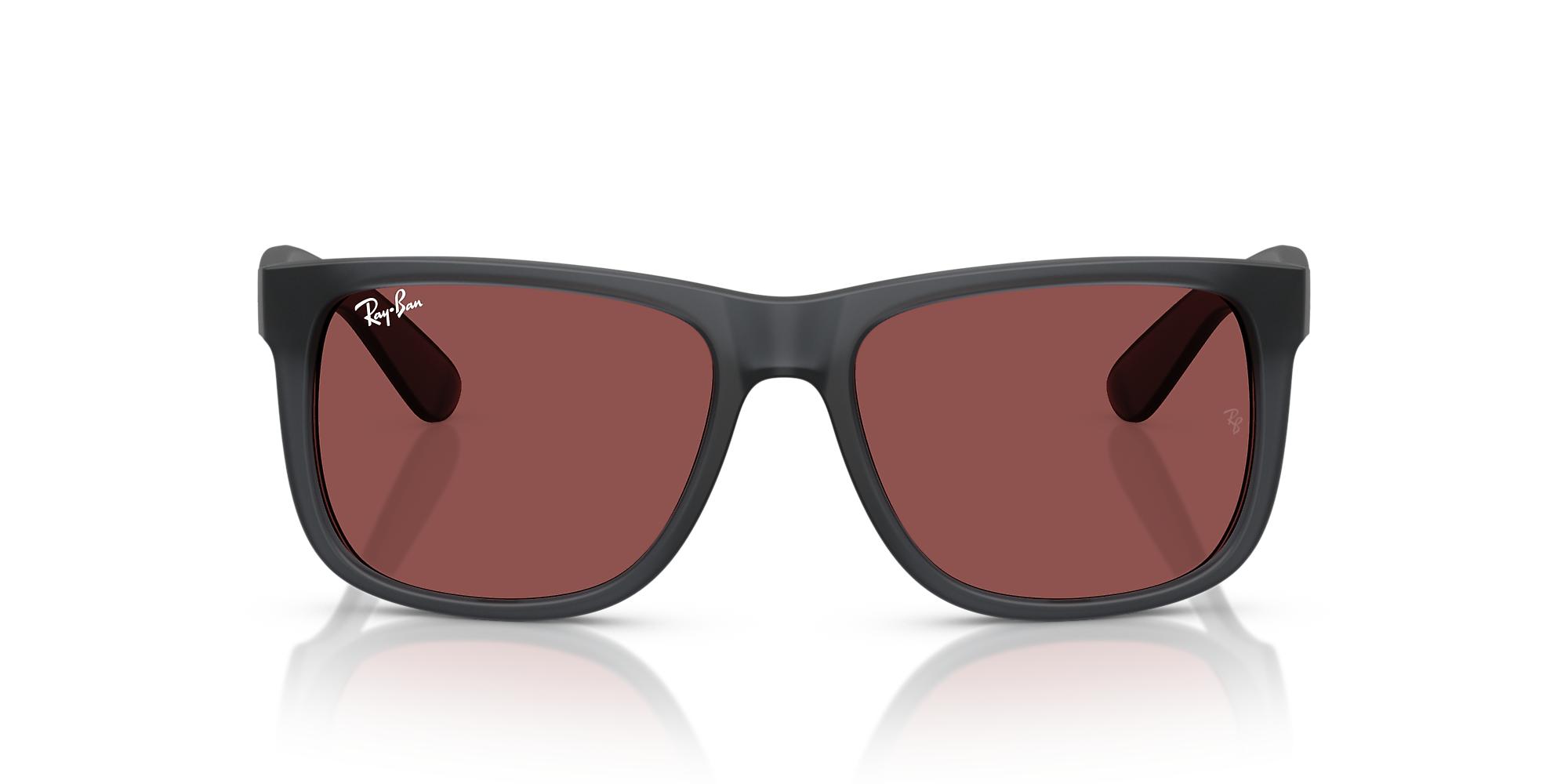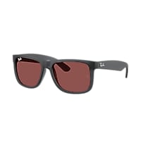 Inspired by the legendary Wayfarer, Ray-Ban RB4165 Justin sunglasses bring a bold twist to an iconic design. The grey square sunglasses in acetate exude modern sophistication, enhanced by a rugged matte rubber finish. Violet classic lenses offer 100% UVA/UVB protection, combining vibrant style with advanced functionality. With nylon temples for lasting comfort, these Ray-Ban sunglasses make a statement with their defined edges and authentic profile.