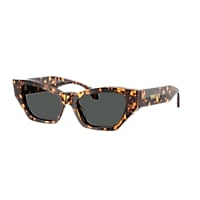 Elevate your fashion with Versace VE4488U. The cat-eye shape and polished havana tortoise frame color, made of durable acetate, add a touch of sophistication to any look. Featuring solid dark grey lenses, these shades ensure excellent protection while maintaining a stylish edge. With its unique design and versatility, this pair is a must-have accessory for every fashion-forward individual.
