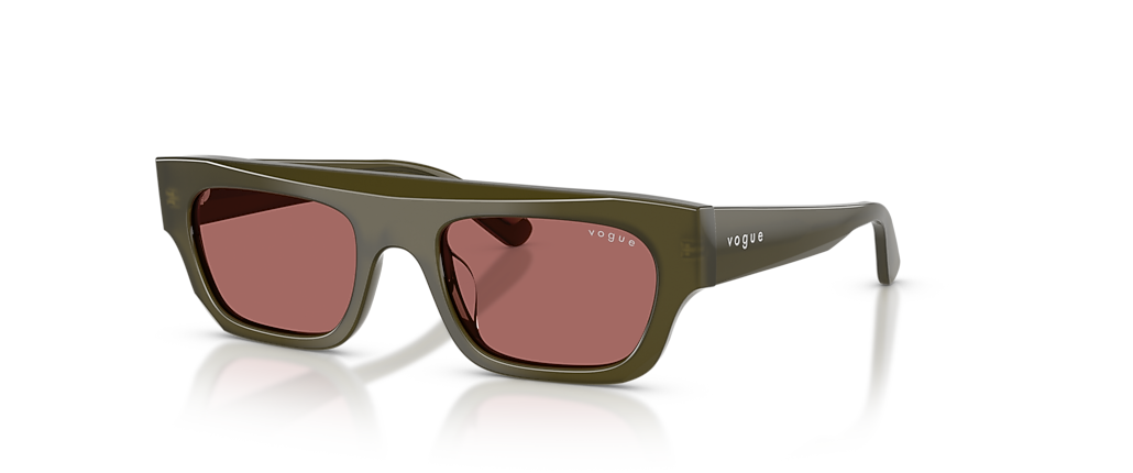 Turn up the confidence with the Vogue Eyewear VO5694SU sunglasses. The rectangular acetate frames feature clean lines and a striking flat browline that exudes runway attitude. These green sunglasses feature a front that contrasts effortlessly with violet lenses for a bold yet approachable look. Designed as sunglasses with a universal fit and standard bridge, they are both stylish and comfortable.
