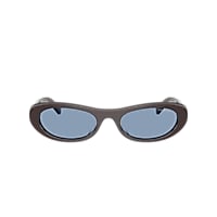 These Vogue Eyewear sunglasses feature luxurious brown acetate frames in a chic round shape, inspired by retro elegance. The green classic lenses offer timeless appeal, while the bold design exudes modern confidence. Crafted as sunglasses with a universal fit for all-day comfort, they are adorned with the signature Vogue Eyewear logo on the temples for a touch of iconic style.