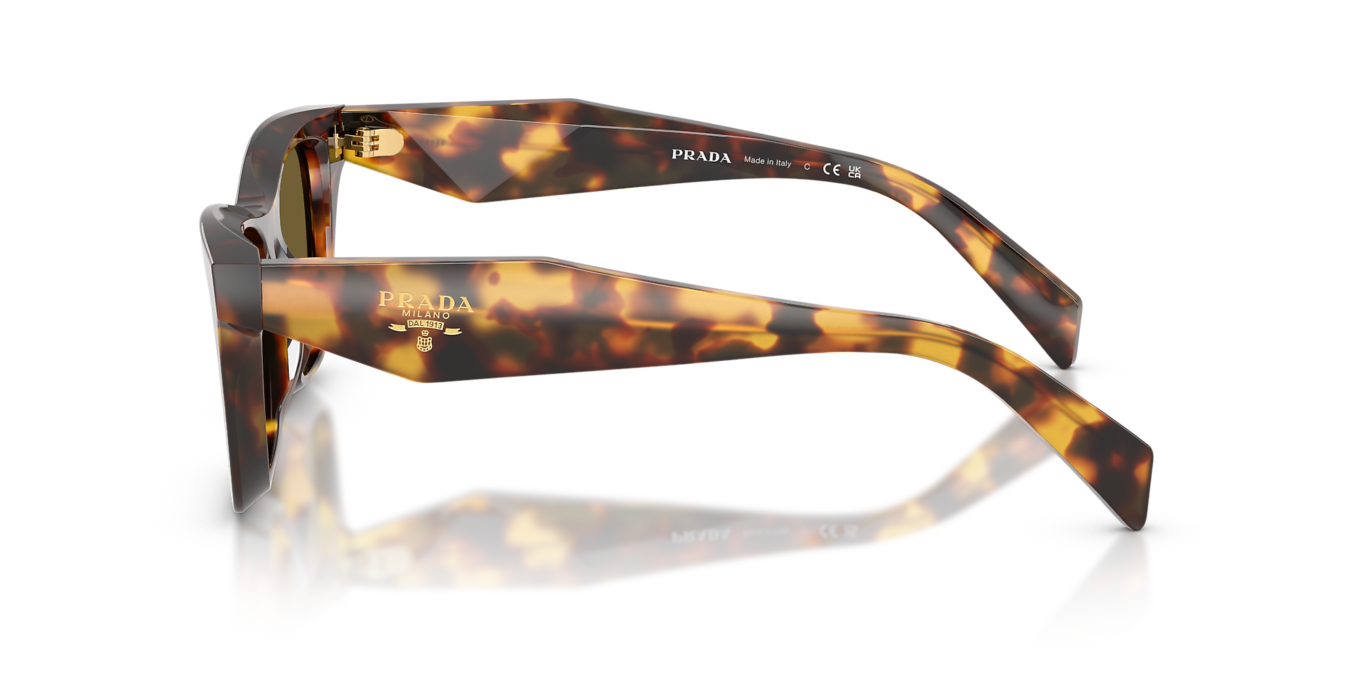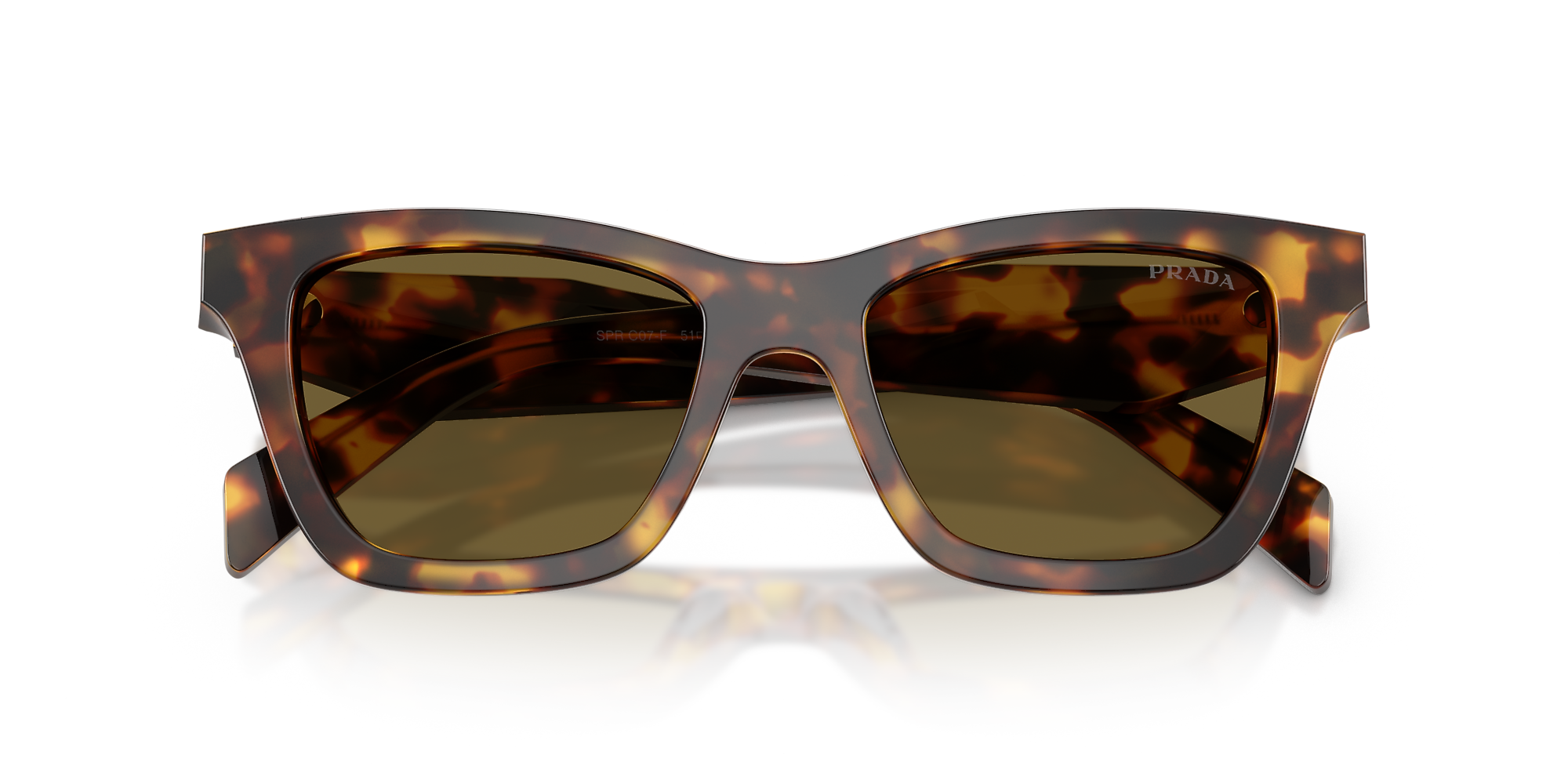 Elevate your look while maintaining a high level of performance with Prada PR C07SF. The butterfly shape and polished honey tortoise frame, crafted from durable acetate, offer a unique and stylish twist on the traditional glasses design. The solid color dark brown lenses provide excellent sun protection and add a touch of sophistication to the overall aesthetic. These shades are not only a fashion statement but also an essential accessory for everyday wear.